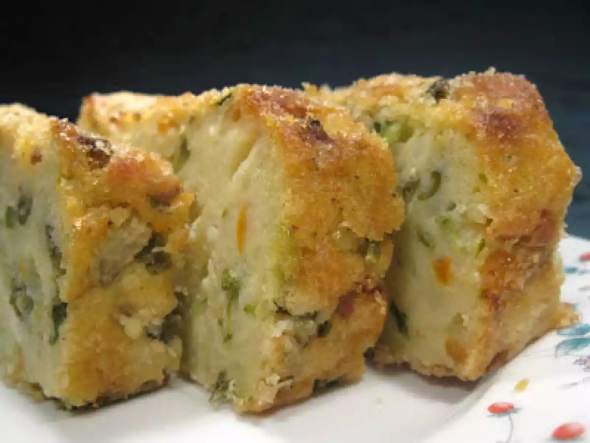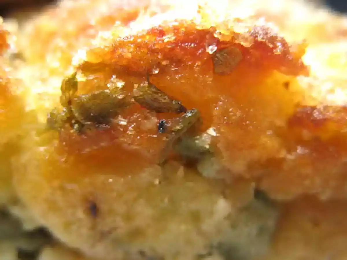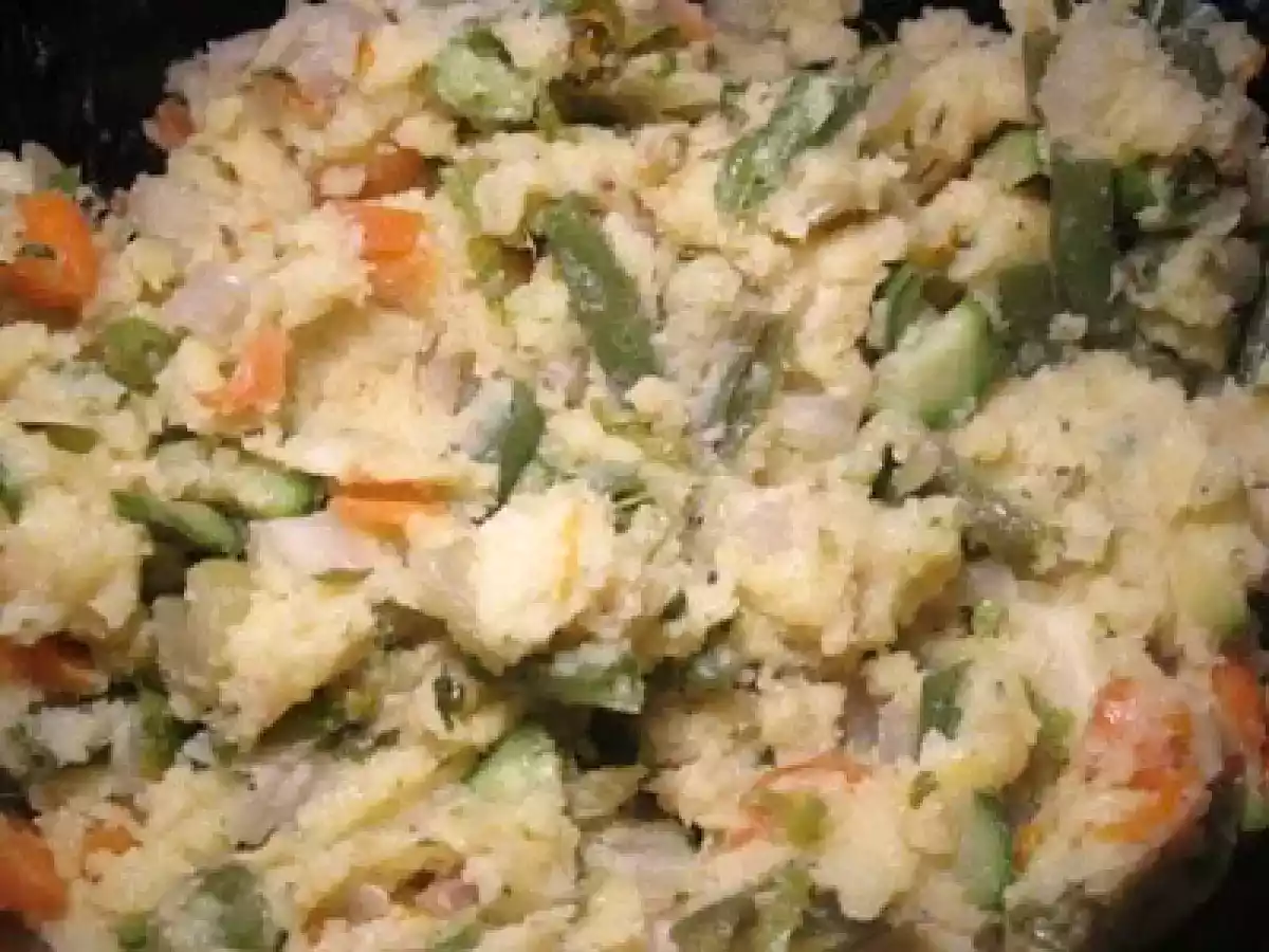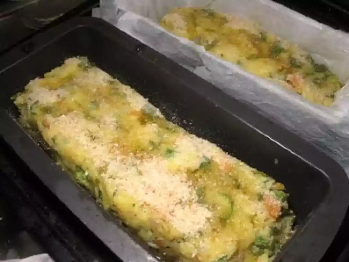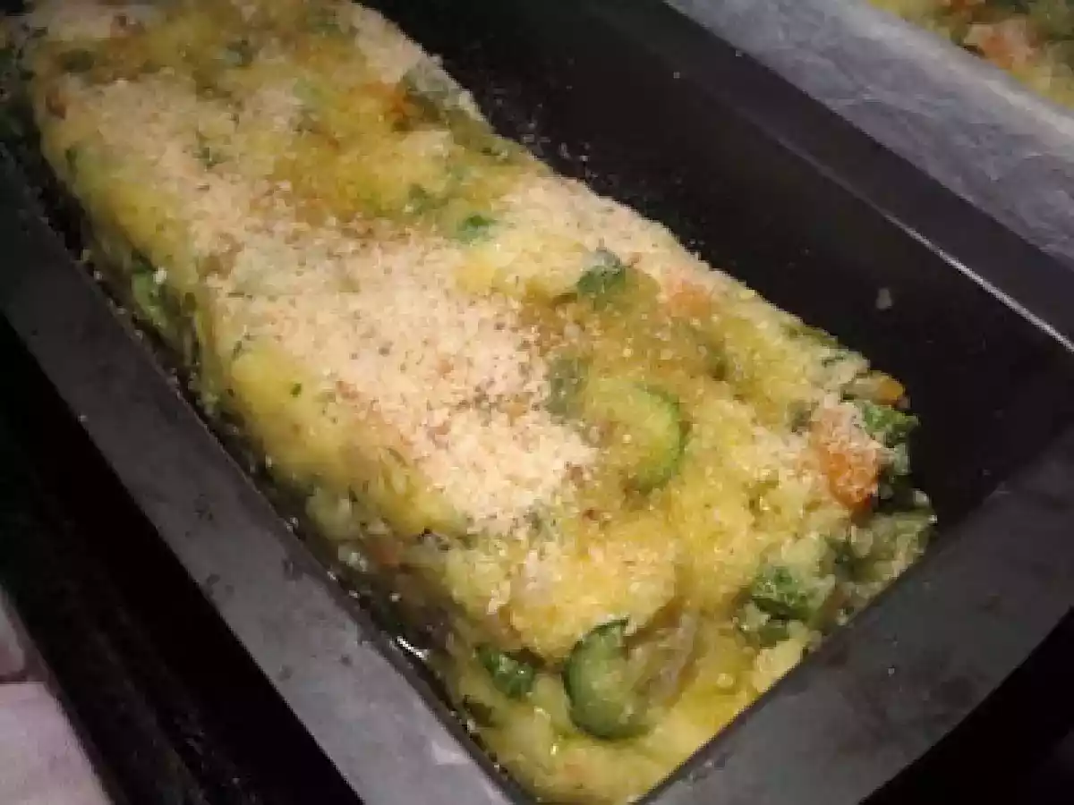 Polpettone di verdure con scamorza affumicata PrecedenteProssimo Portata principalemedia2 h 40 m Invia questa ricetta ad un amico Stampa la ricetta Contatta l'autore della Ricetta Pubblica la foto di questa ricetta Ingredienti 6 700 g di patate 60 g di parmigiano grattugiato 1 uovo e 1 tuorlo 75 g di taleggio 50 g di scamorza affumicata Le verdure 2 scalogni 150 g di zucchine 50 g di fiori di zucchine 70 g di carote 100 g di sedano 100 g di fagiolini maggiorana o origano e timo secco sale e pepe q.b. 4-5 cucchiai di olio extravergine poco pangrattato