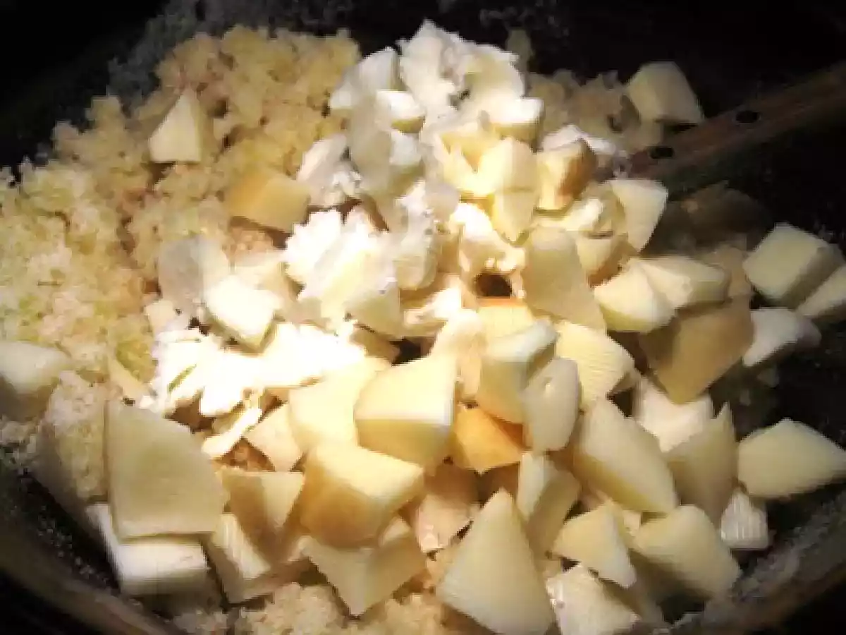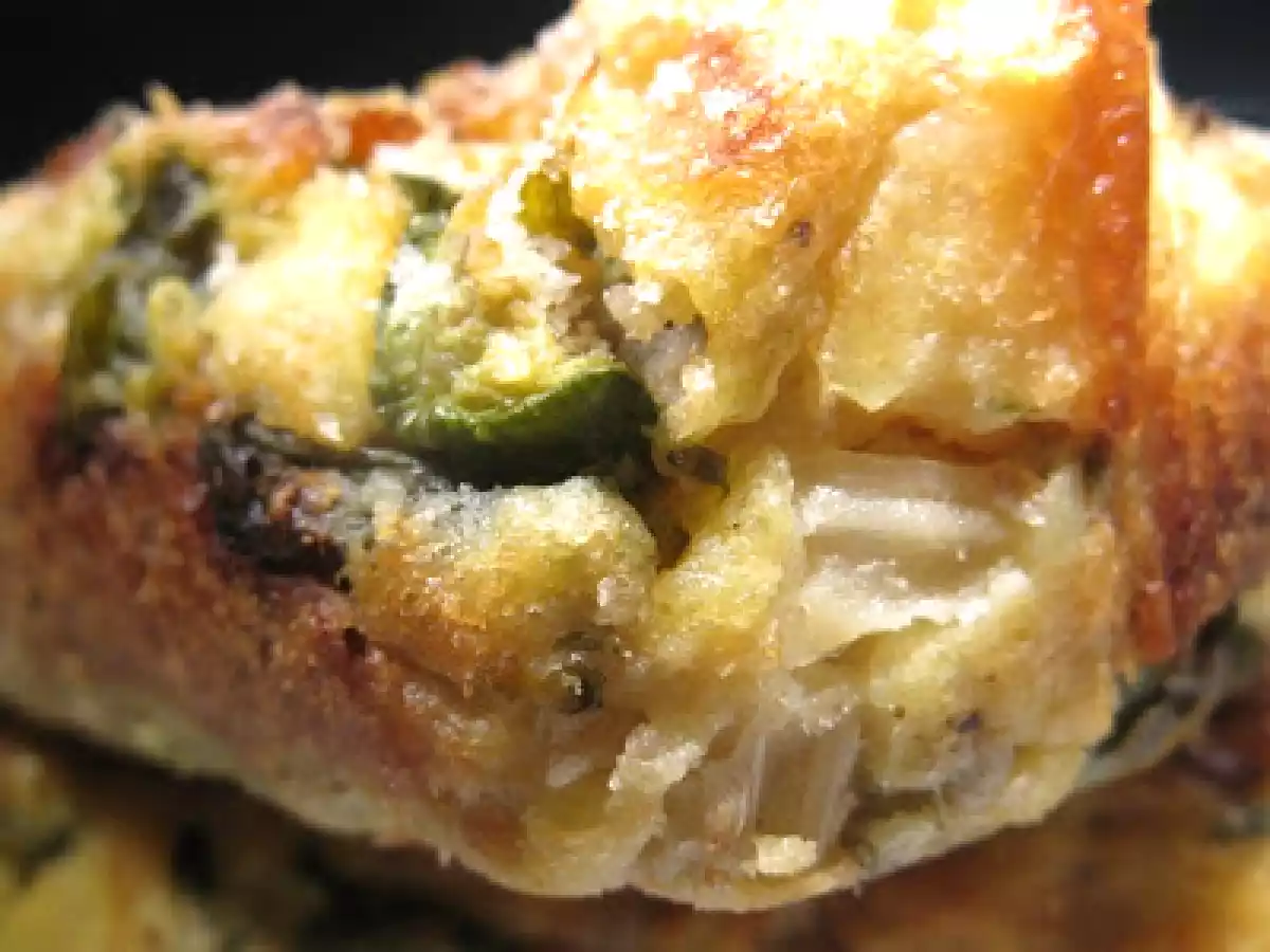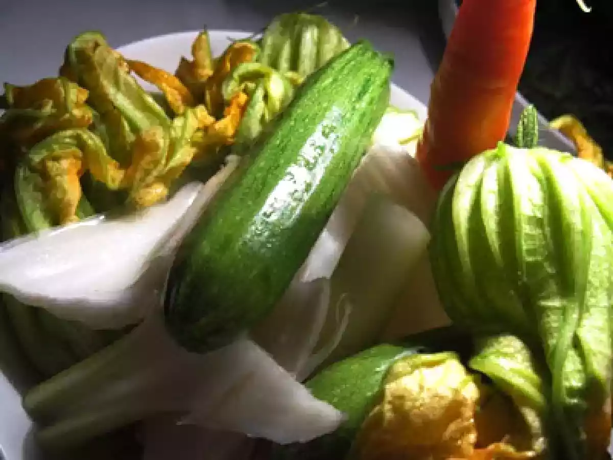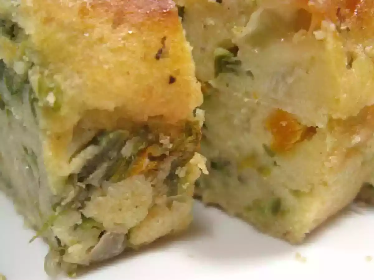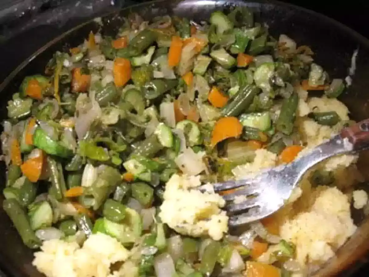 Polpettone di verdure con scamorza affumicata PrecedenteProssimo Portata principalemedia2 h 40 m Invia questa ricetta ad un amico Stampa la ricetta Contatta l'autore della Ricetta Pubblica la foto di questa ricetta Ingredienti 6 700 g di patate 60 g di parmigiano grattugiato 1 uovo e 1 tuorlo 75 g di taleggio 50 g di scamorza affumicata Le verdure 2 scalogni 150 g di zucchine 50 g di fiori di zucchine 70 g di carote 100 g di sedano 100 g di fagiolini maggiorana o origano e timo secco sale e pepe q.b. 4-5 cucchiai di olio extravergine poco pangrattato