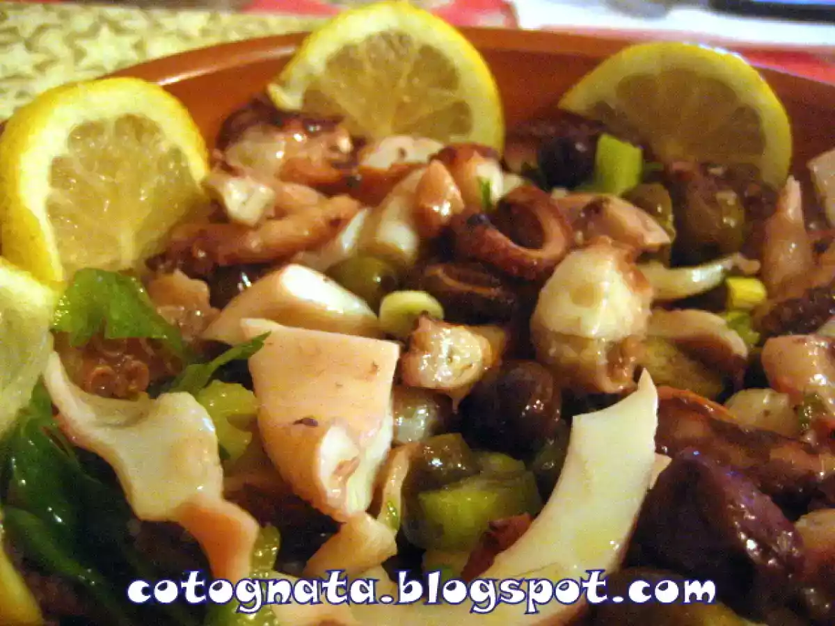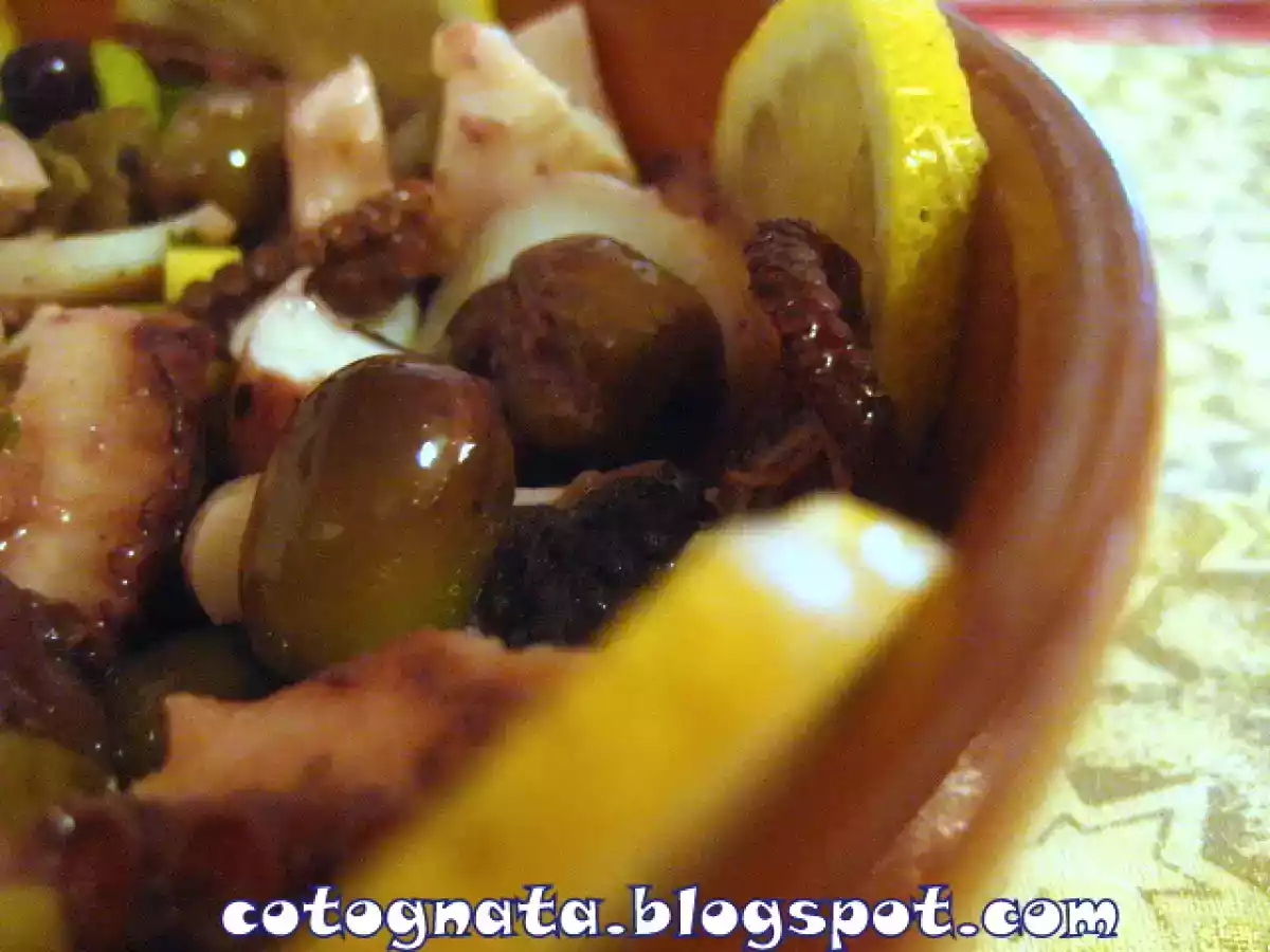 Polpo con sedano e olive nere...di naviganti e di ricordi... vota adesso PrecedenteProssimo Portata principalefacile1 ora Invia questa ricetta ad un amico Stampa la ricetta Contatta l'autore della Ricetta Pubblica la foto di questa ricetta Ingredienti 4 500 g polpo 2 liomoni 1 bella costa di sedano metà tazza di olive nere origano olio extravergine di oliva sale marino pepe