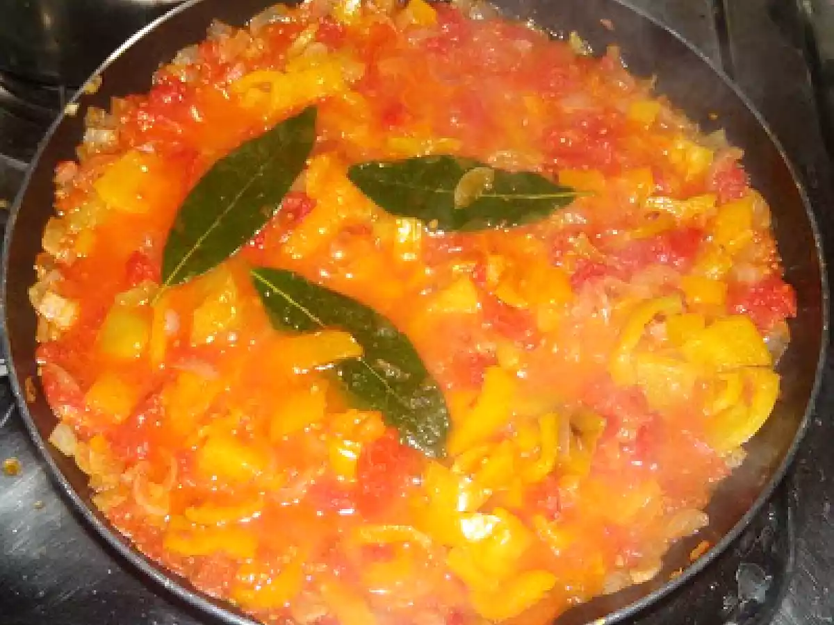 Pomodori, peperoni e cipolle in agrodolce Portata principalefacile40 min133 Kcal Invia questa ricetta ad un amico Stampa la ricetta Contatta l'autore della Ricetta Pubblica la foto di questa ricetta Ingredienti 4 2 peperoni rossi 2 peperoni gialli 2 cipolle 4 pomodori aceto di vino bianco o per un gusto più delicato di mele 3 foglie d'alloro peperoncino olio evo zucchero sale Costo stimato: 4.63Euros€ (1.16€/Porzioni)