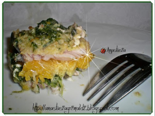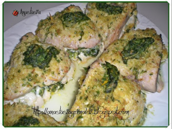 Portafogli di pesce spada con cipolle rosse al forno PrecedenteProssimo Portata principalefacile1 h 5 m Invia questa ricetta ad un amico Stampa la ricetta Contatta l'autore della Ricetta Pubblica la foto di questa ricetta Ingredienti 3 8 fette di pesce spada 300 g di erbette 4 grosse cipolle di Tropea 2 arance 2 fette di pancarrè 1 limone 1 scalogno prezzemolo olio sale pepe qb