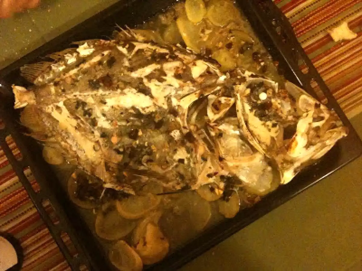Preparati per noi: pesce san pietro in letto di patate Portata principalefacile50 min473 Kcal Invia questa ricetta ad un amico Stampa la ricetta Contatta l'autore della Ricetta Pubblica la foto di questa ricetta Ingredienti 3 1 pesce San Pietro (circa 2 kg.) 1 kg di patate olio extra-vergine d'oliva sale 2 spicchi d'aglio prezzemolo 1 cipolla media 1 pomodoro secco 2 bicchieri di vino bianco Costo stimato: 3.71Euros€ (1.24€/Porzioni)