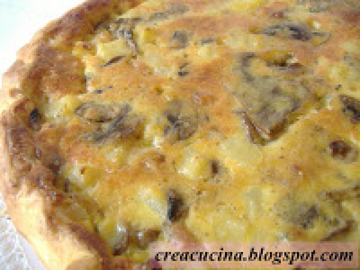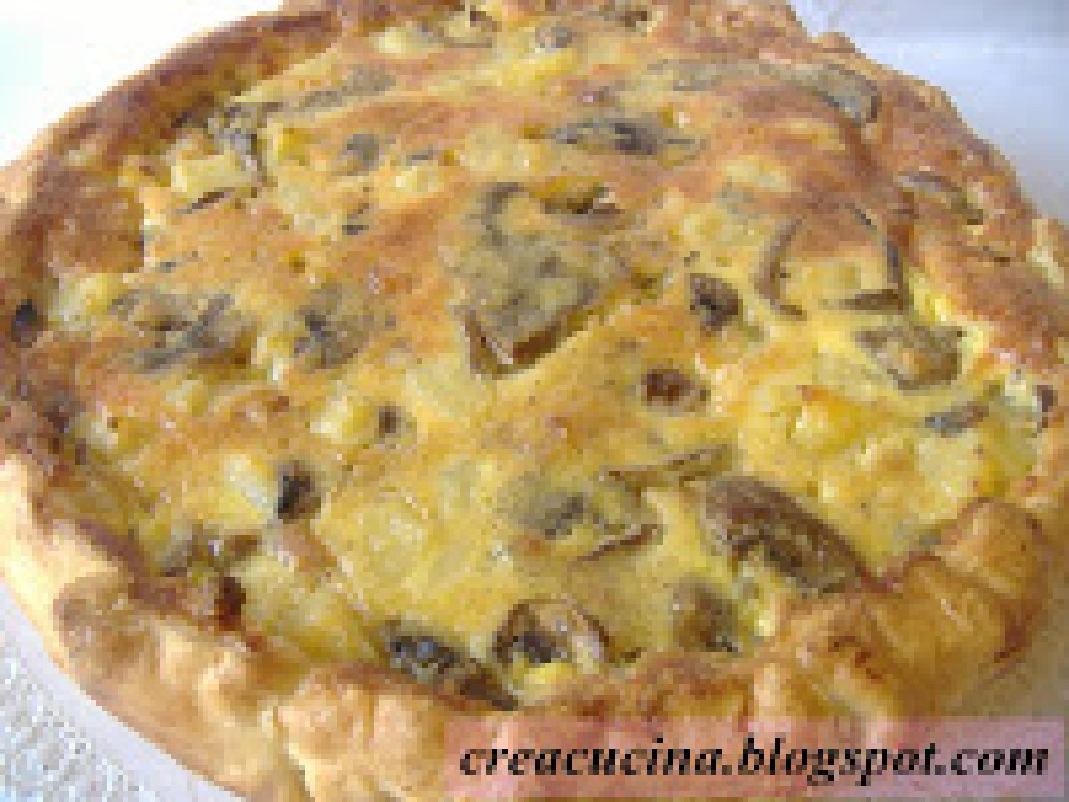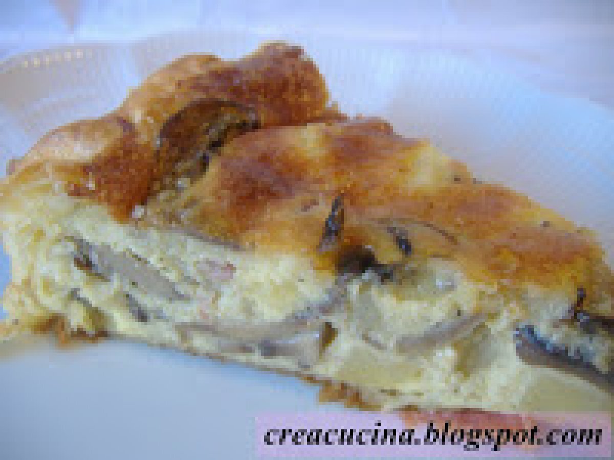 Quiche ai funghi, patate e speck vota adesso PrecedenteProssimo Portata principalefacile1 ora680 Kcal Invia questa ricetta ad un amico Stampa la ricetta Contatta l'autore della Ricetta Pubblica la foto di questa ricetta Ingredienti 4 1 rotolo di pasta sfoglia 3 patate medie 230 g di funghi champignon 1 pezzetto di porro 4 uova 100 g di parmigiano grattugiato 50 g di speck mezzo bicchiere di latte olio extra vergine di oliva sale e pepe Costo stimato: 7.41Euros€ (1.85€/Porzioni)
