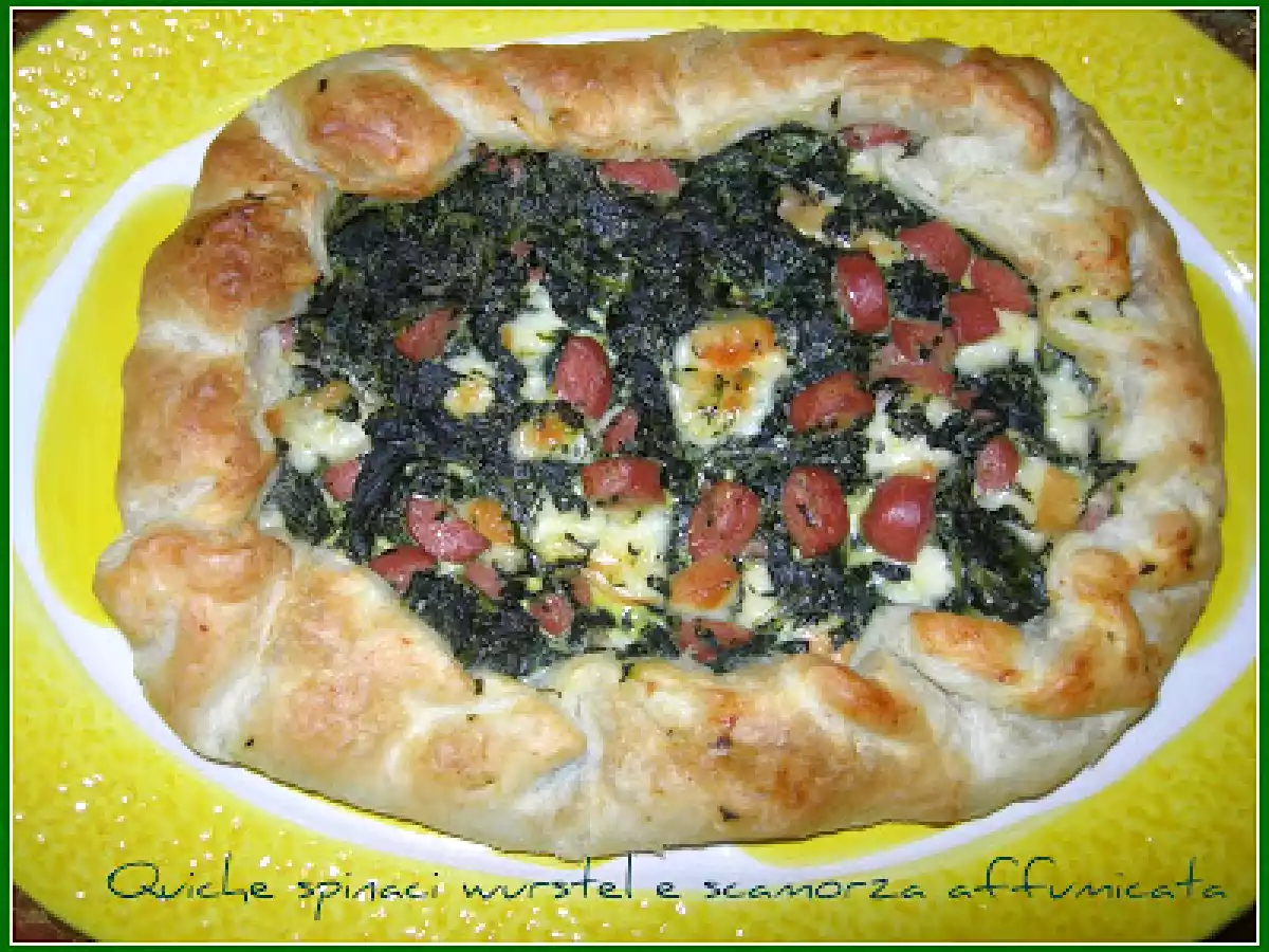 Quiche spinaci,wurstel e scamorza affumicata