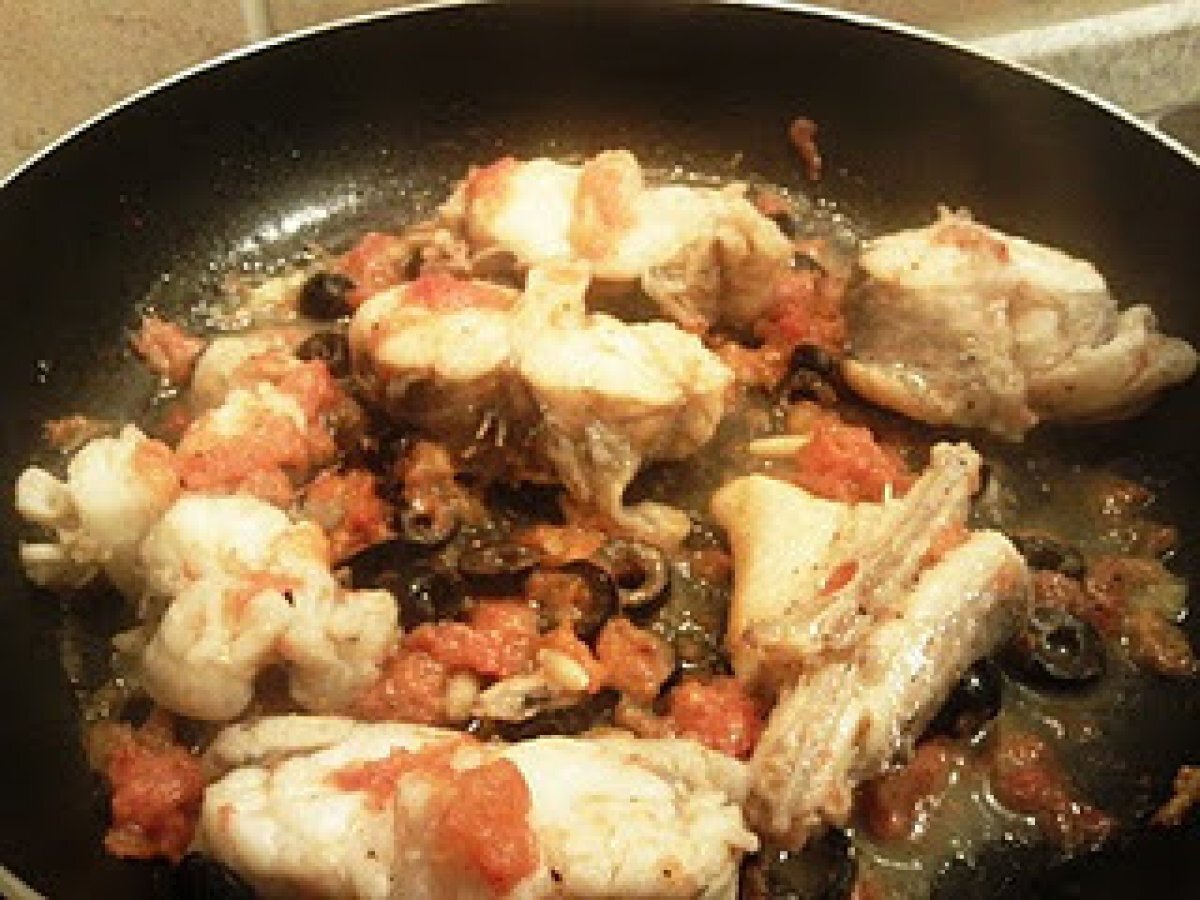 Rana pescatrice con pomodori.olive nere e pinoli con contorno di patate croccanti al rosmarino PrecedenteProssimo Portata principalefacile30 min Invia questa ricetta ad un amico Stampa la ricetta Contatta l'autore della Ricetta Pubblica la foto di questa ricetta Ingredienti 2 rana pescatrice 600/700 gr pomodori maturi olive nere pinoli olio sale e pepe