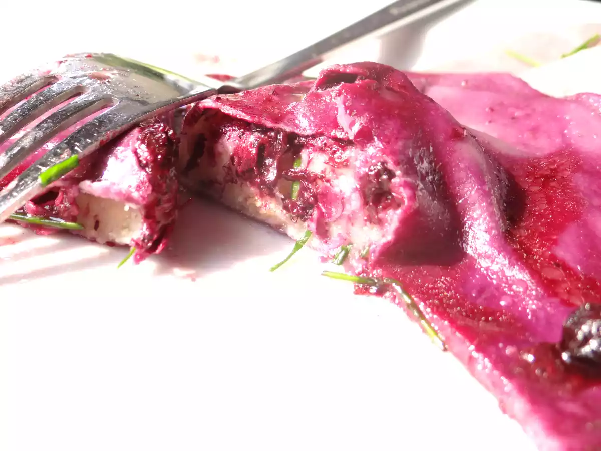 Ravioli ai mirtilli con ripieno di asiago e erba cipollina