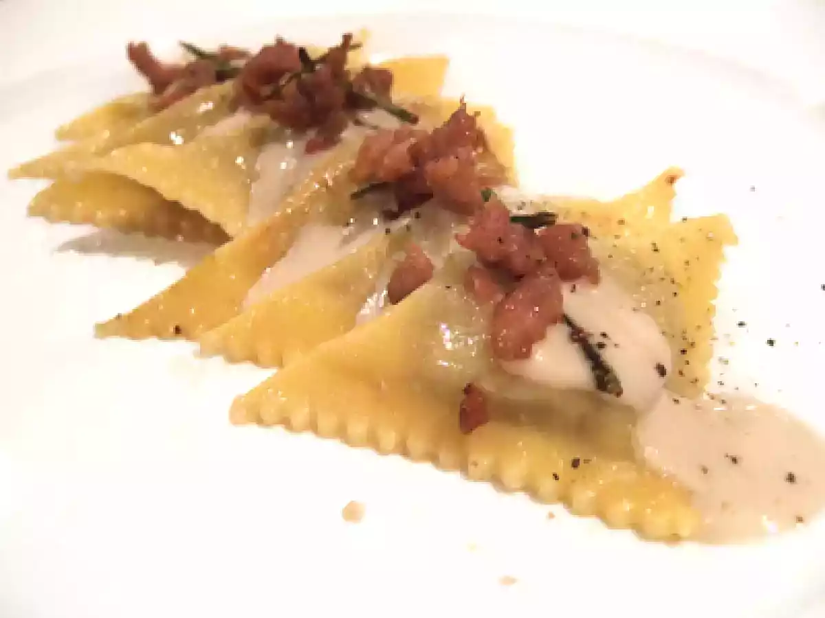 Ravioli ai porcini con salsa di castagne e salsiccia al rosmarino Portata principalefacile1 h 2 m Invia questa ricetta ad un amico Stampa la ricetta Contatta l'autore della Ricetta Pubblica la foto di questa ricetta Ingredienti 4 500 g ravioli ai porcini 120 g castagne 50 ml panna 100 ml latte 120 g salsiccia 40 g burro 1 rametto di rosmarino sale e pepe q.b.