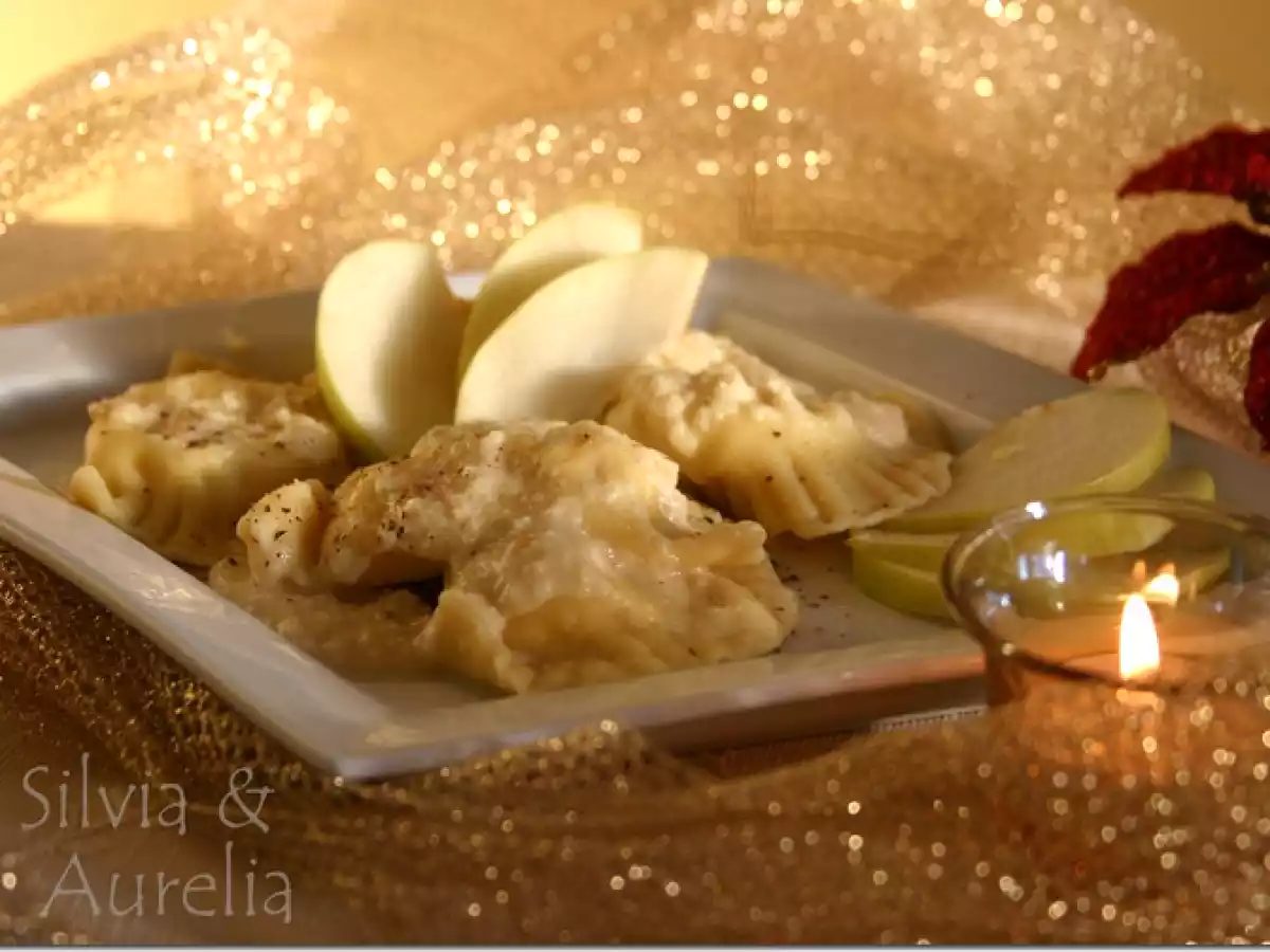 Ravioli al foie gras e mele, con salsa allo scalogno