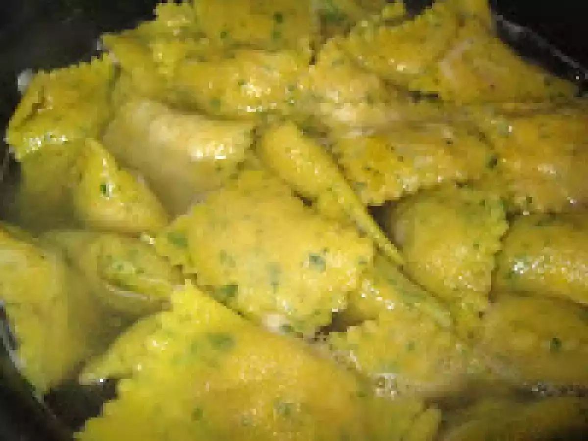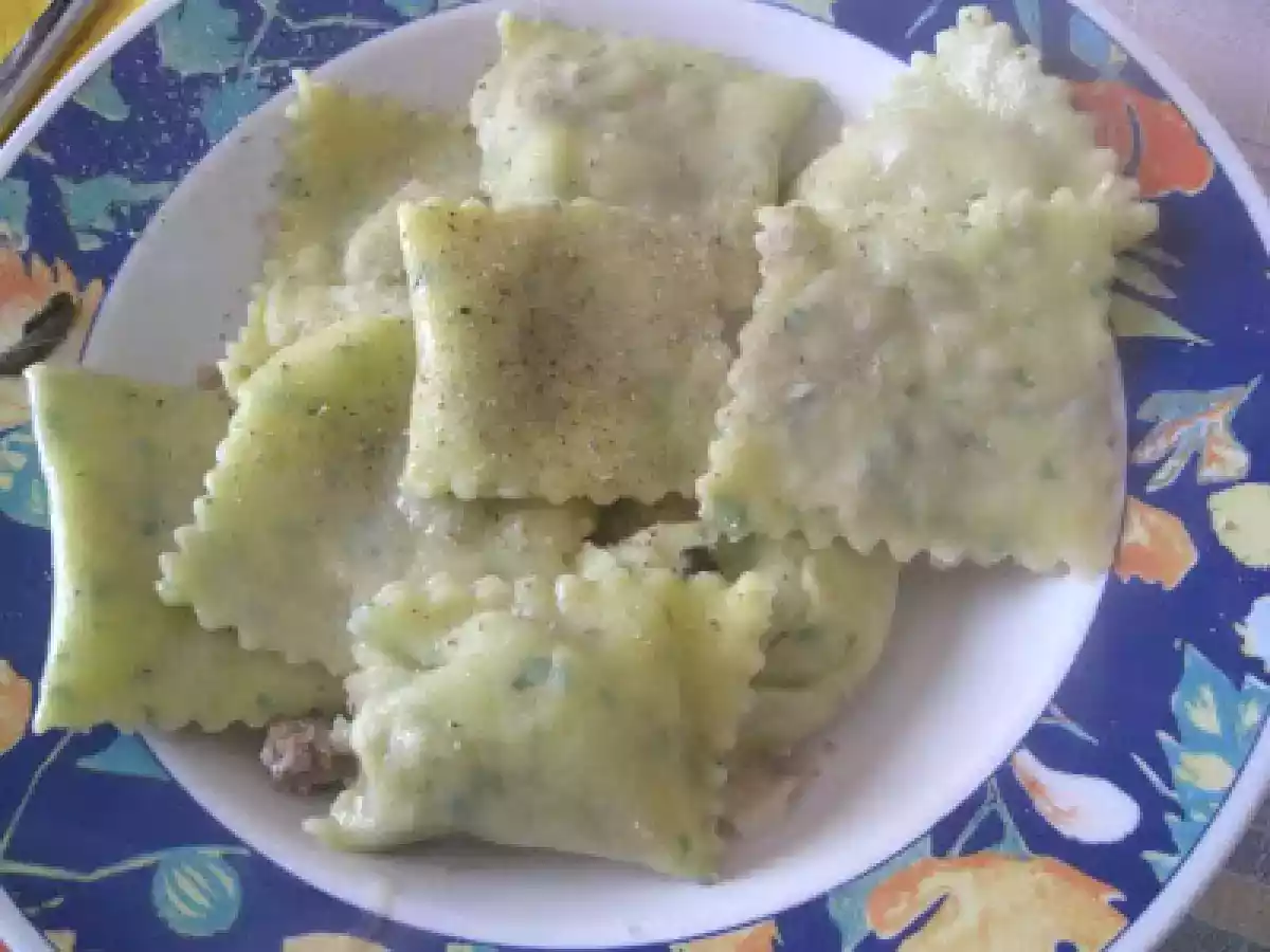 Ravioli al prezzemolo ripieni di carne vota adesso PrecedenteProssimo Portata principalefacile50 min Invia questa ricetta ad un amico Stampa la ricetta Contatta l'autore della Ricetta Pubblica la foto di questa ricetta Ingredienti 3 Per la pasta : 300 grammi di farina 3 uova olio extravergine di oliva sale q.b. Per il ripieno : 200 grammi di carne macinata mortadella cipolla vino bianco olio extravergine di oliva Condimento : burro salvia pepe parmigiano