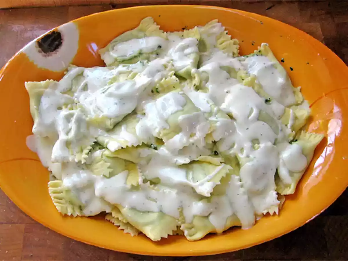 Ravioli con ortiche vota adesso Portata principalefacile1 h 5 m Invia questa ricetta ad un amico Stampa la ricetta Contatta l'autore della Ricetta Pubblica la foto di questa ricetta Ingredienti 6 SFOGLIA 4 uova intere 360 - 400 g farina 00 Spadoni speciale per pasta fatta in casa RIPIENO 350 g ricotta 1 uovo intero 170 g parmigiano grattugiato 100 g ortiche lessate e strizzate SUGO 2 cucchiai molto abbondanti di LABNA 1 cucchiaio raso farina 1 cucchiaio burro poco latte acqua di cottura