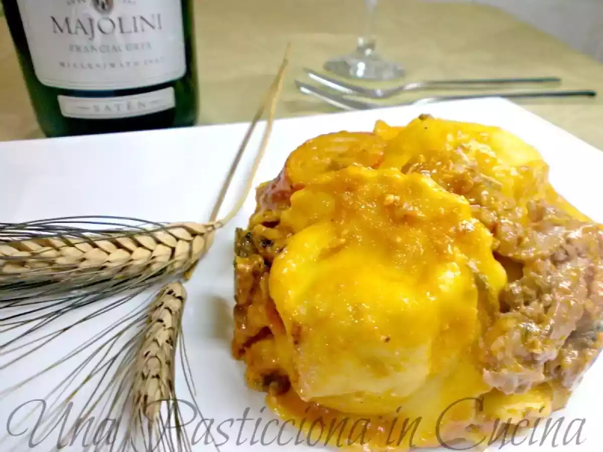 - Nel frattempo, fate cuocere in abbondante acqua salata i ravioli di pesce – girasoli ripieni ; una volta cotti, scolateli e versateli nella padella contenente il condimento già preparato in precedenza : aggiungetevi anche la panna da cucina e proseguite la cottura per alcuni minuti, a fuoco vivo, in modo da far insaporire per bene il tutto, dopodichè servite .
