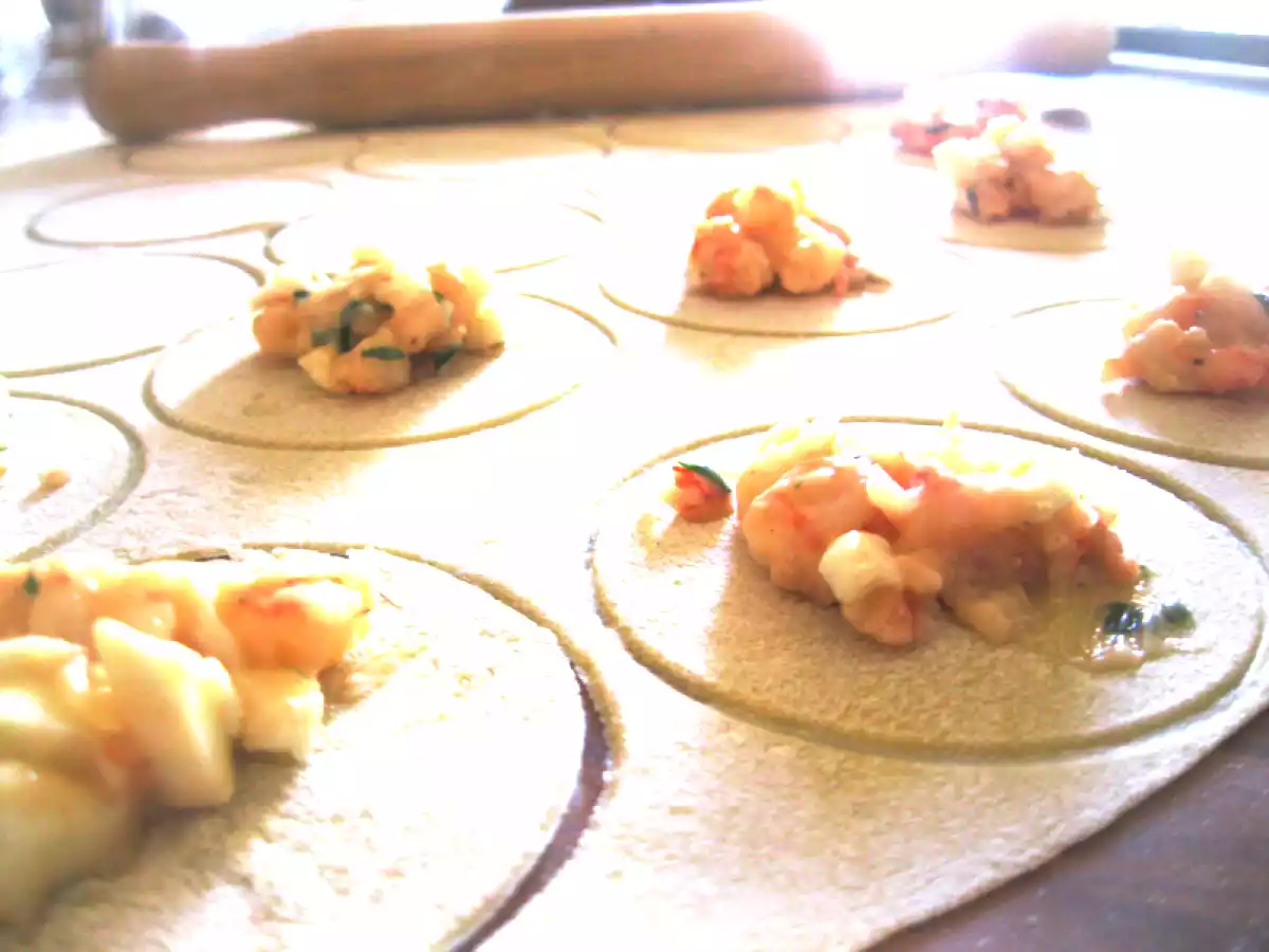 La pasta fresca ripiena ci lascia liberi per creare, all'interno altro che i soliti ingredienti, possiamo inventare quello che ci pare. Questa è una ricetta con i gamberi e speck, in un risultato molto speciale!