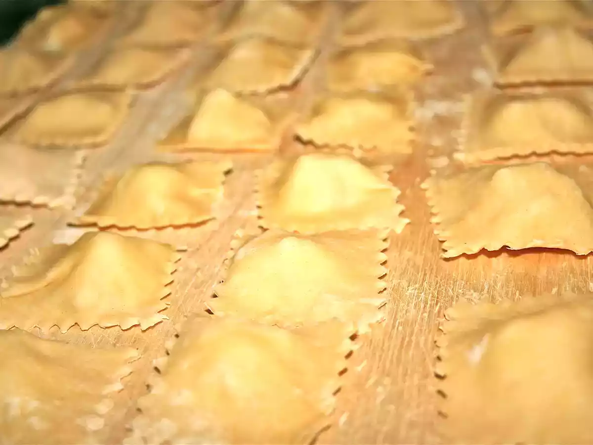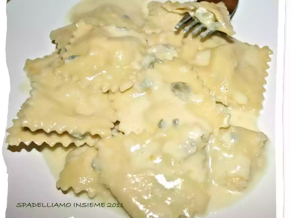 Ravioli ripieni alle pere con gorgonzola PrecedenteProssimo Portata principalemedia55 min Invia questa ricetta ad un amico Stampa la ricetta Contatta l'autore della Ricetta Pubblica la foto di questa ricetta Ingredienti 2 2 pere abate 3 cucchiai di ricotta di mucca 2 manciate generose di parmigiano reggiano grattugiato un pizzico di noce moscata 1 tocchetto di burro 1 fetta non troppo grossa di gorgonzola un goccio di latte fresca 2 uova 220 gr di farina sale e pepe qb Costo stimato: 2.97Euros€ (1.48€/Porzioni)