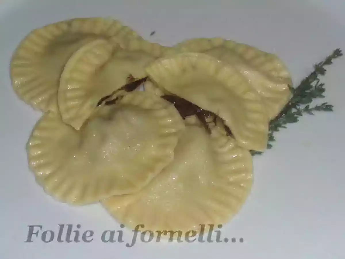 Ravioli ripieni di radicchio rosso e pecorino fresco Portata principalefacile45 min Invia questa ricetta ad un amico Stampa la ricetta Contatta l'autore della Ricetta Pubblica la foto di questa ricetta Ingredienti 4 Per la pasta 400 g d farina 00 4 uova Un pizzico di sale Per il ripieno Due cesti grandi di radicchio rosso 1 cipolla 100 g di pecorino fresco Un mazzetto di timo Olio extravergine di oliva