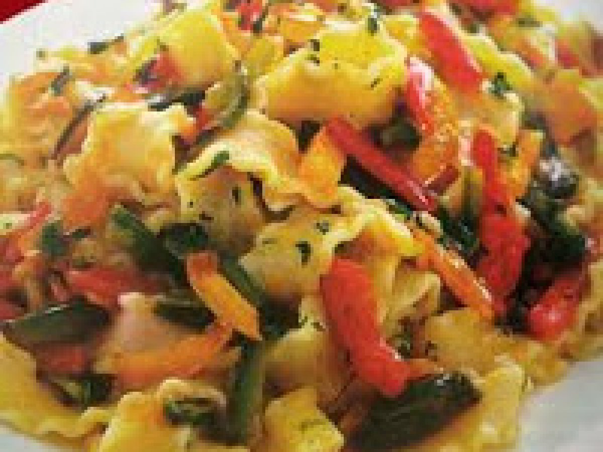 - Salate. Lessate la pasta, scolatela al dente, trasferitela nella padella con le verdure, fatela saltare velocemente in modo che si insaporisca poi mettetela in un piatto da portata.