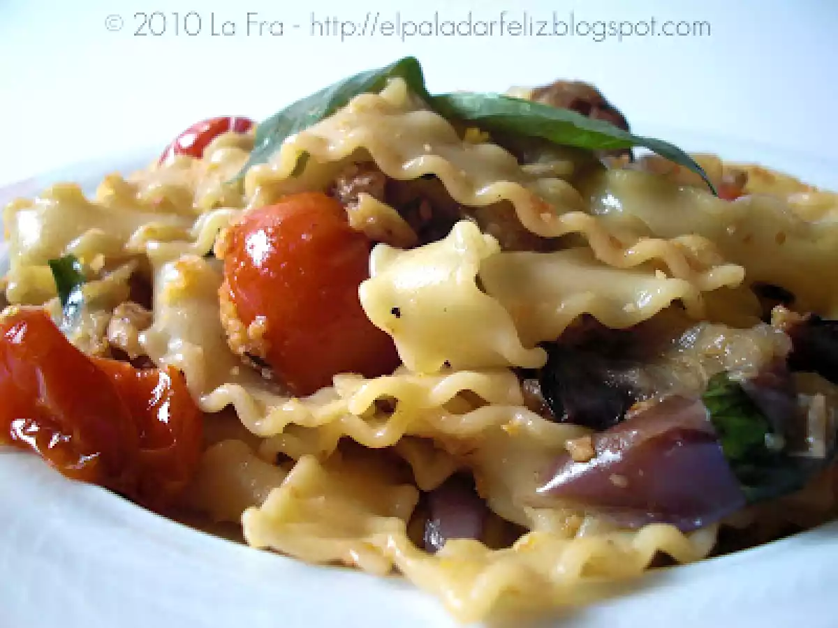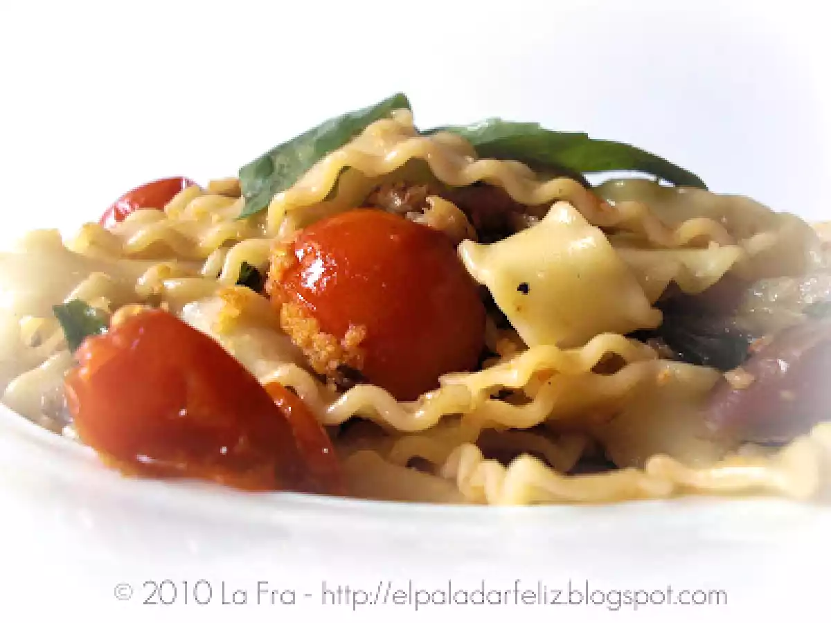 Reginette con pomodorini gratinati e melanzane viola vota adesso PrecedenteProssimo Portata principalefacile55 min Invia questa ricetta ad un amico Stampa la ricetta Contatta l'autore della Ricetta Pubblica la foto di questa ricetta Ingredienti 2 160 g di reginette una melenzana viola 15 pomodorini ciliegia circa un mazzetto di basilico uno spicchio d'aglio un ciuffo di prezzemolo parmigiano grattugiato un cucchiaio di pangrattato olio extravergine d'oliva sale e pepe