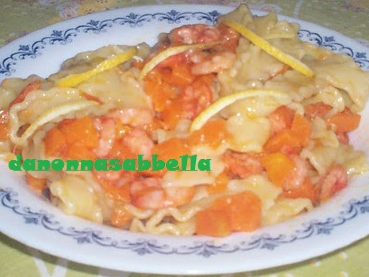 Reginette con zucca,gamberetti e profumo di limone vota adesso PrecedenteProssimo Portata principalefacile35 min Invia questa ricetta ad un amico Stampa la ricetta Contatta l'autore della Ricetta Pubblica la foto di questa ricetta Ingredienti 3 150 g reginette 300 ml gamberetti freschi congelati o in salamoia 2/3 pomodorini ciliegia 150 g zucca cipolla olio extravergine d'oliva sale 1 cucchiaio succo di limone 1 pizzico di zenzero buccia di 1/2 limone