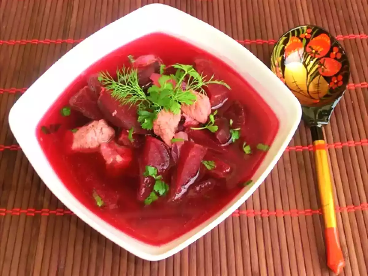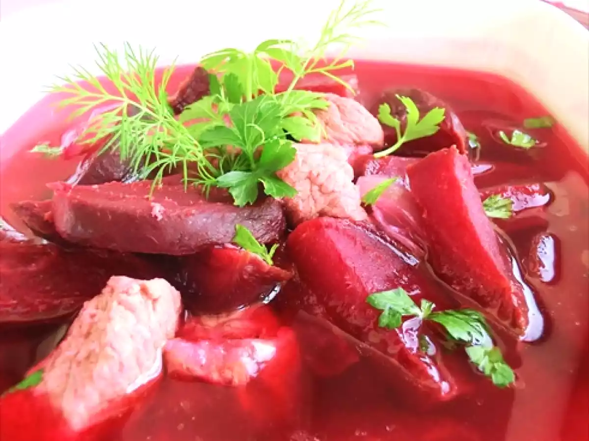 Vi presento una famosa zuppa, il Borsch, un piatto russo molto antico e famoso nel mondo in una versione differente rispetto alla ricetta che ho già pubblicato nei mesi scorsi. In questo caso utilizziamo barbabietole cotte in forno e aromatizziamo il tutto con vino bianco e un pizzico di succo di limone.