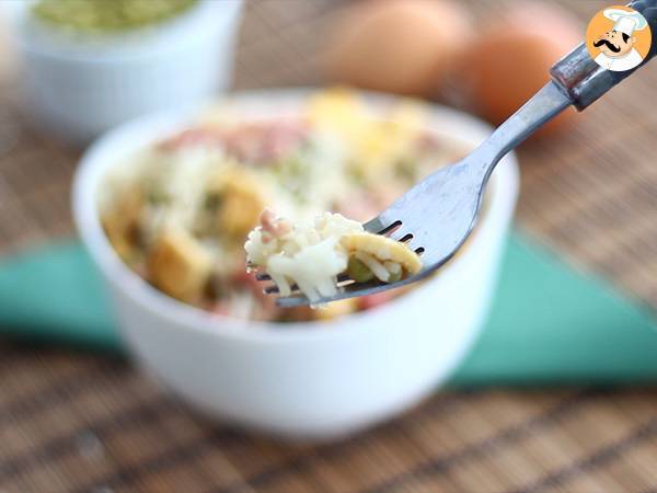 Abbiamo rivisitato leggermente la ricetta, nella versione originale si utilizza il prosciutto cotto a dadini al posto della pancetta.