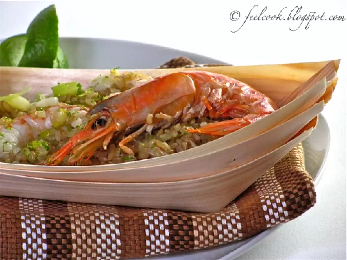 Riso integrale al tè nero con gamberi, porri e zenzero PrecedenteProssimo Portata principalefacile50 min481 Kcal Invia questa ricetta ad un amico Stampa la ricetta Contatta l'autore della Ricetta Pubblica la foto di questa ricetta Ingredienti 4 400 gr. di riso integrale 12 gamberi 2 porri 2 cucchiaini di zenzero fresco 1 cucchiaio di tè nero 1 lime olio extravergine di oliva q.b. sale q.b.