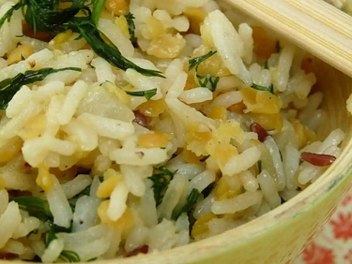 Riso selvaggio con lenticchie rosse profumato all'aneto