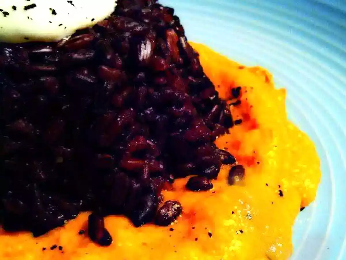 Riso venere su crema di zucca e amaretto con fonduta di gorgomascarpone.....