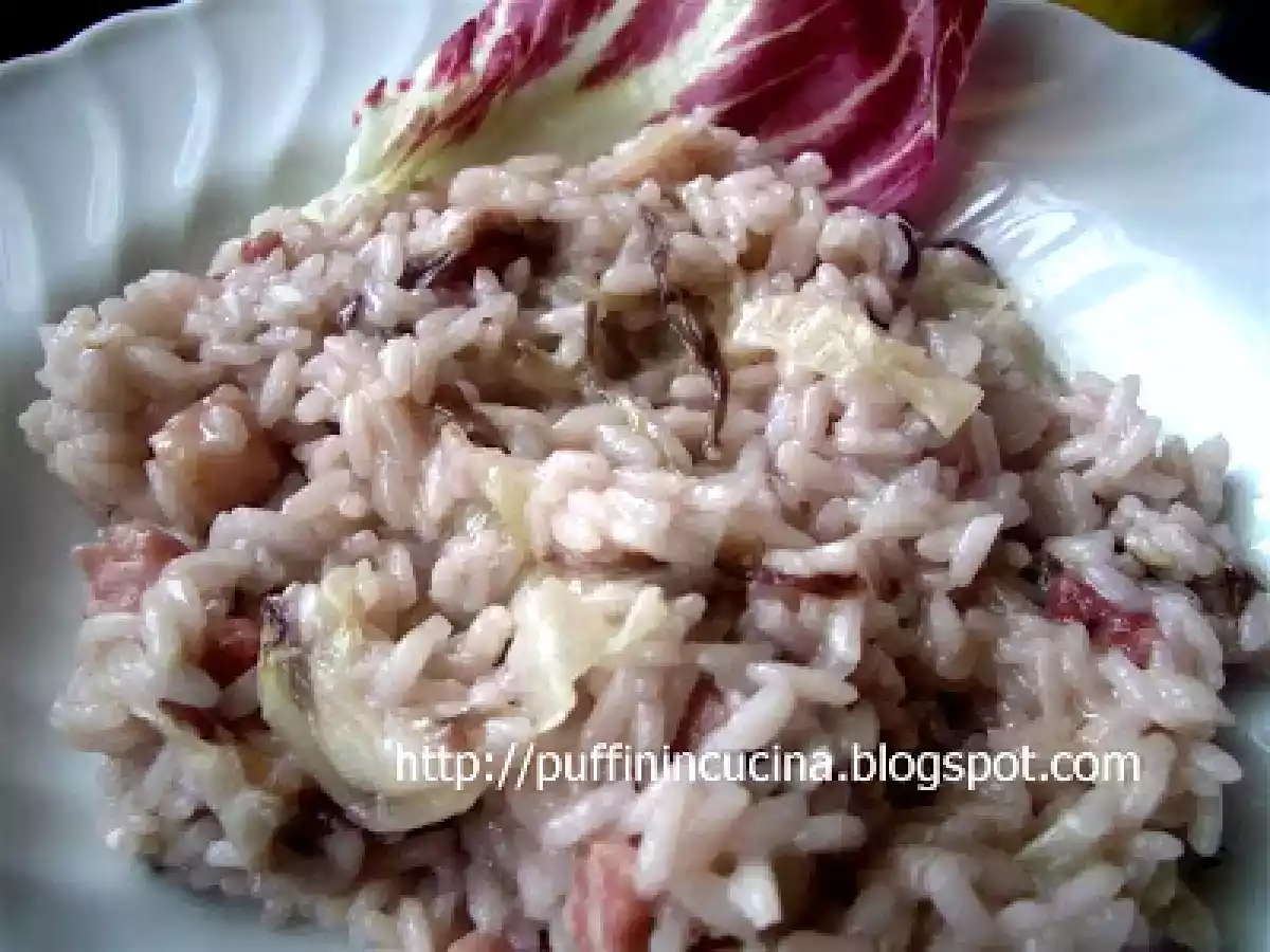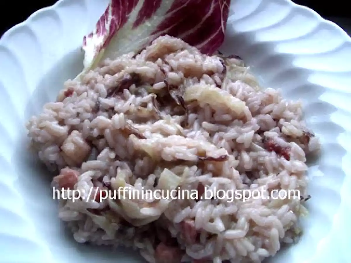 Risottino radicchio di chioggia e pancetta..... PrecedenteProssimo Portata principalemedia35 min208 Kcal Invia questa ricetta ad un amico Stampa la ricetta Contatta l'autore della Ricetta Pubblica la foto di questa ricetta Ingredienti 4 riso per risotti 1 cespo di radicchio rosso 1 scalogno Pancetta a dadini Brodo vegetale Parmigiano 1 bicchiere di vino rosso Costo stimato: 4.81Euros€ (1.2€/Porzioni)