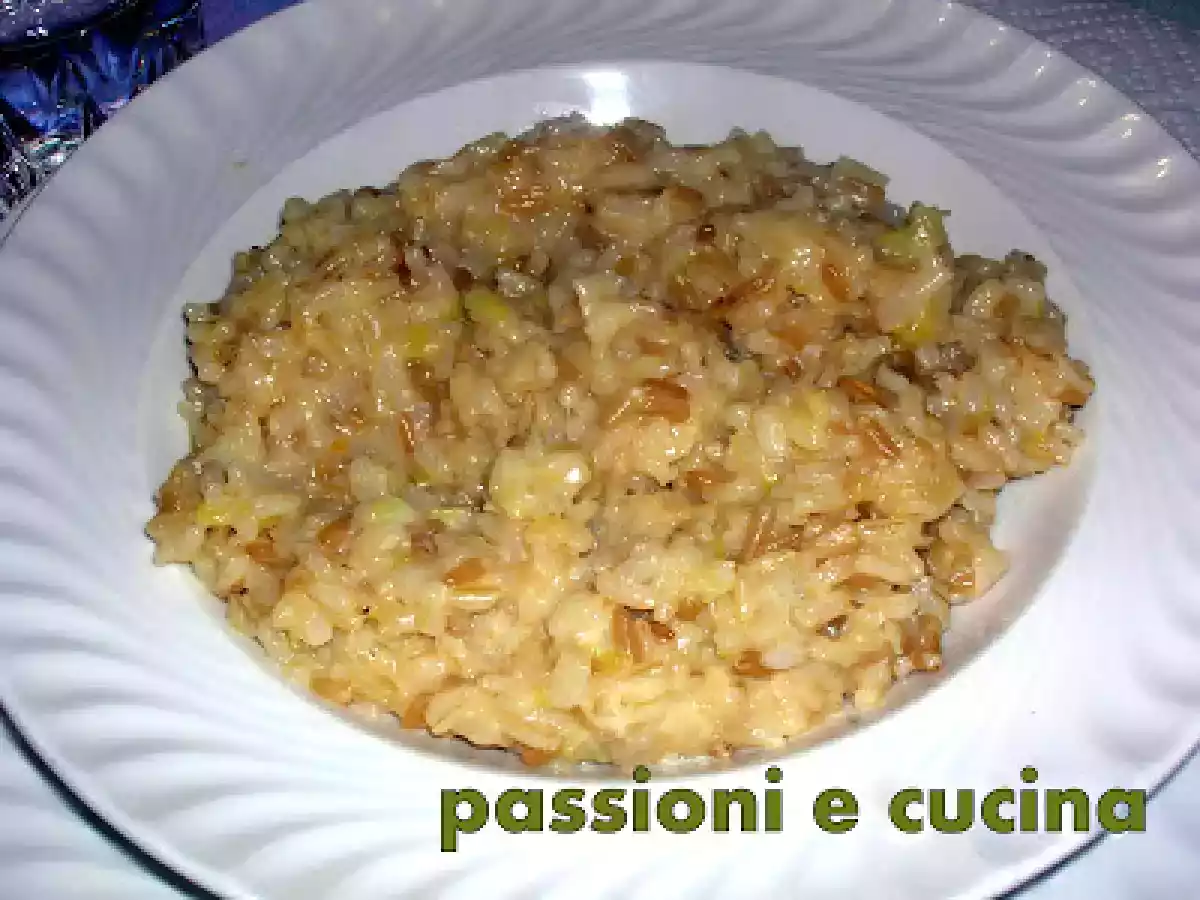Risotto 3 cereali PrecedenteProssimo Portata principalefacile1 ora Invia questa ricetta ad un amico Stampa la ricetta Contatta l'autore della Ricetta Pubblica la foto di questa ricetta Ingredienti 4 2 bicchieri e mezzo di riso 3 cereali 2 porri medi 1 peperoncino 100 g di fontina olio extravergine di oliva parmigiano grattugiato 1 dado granulare