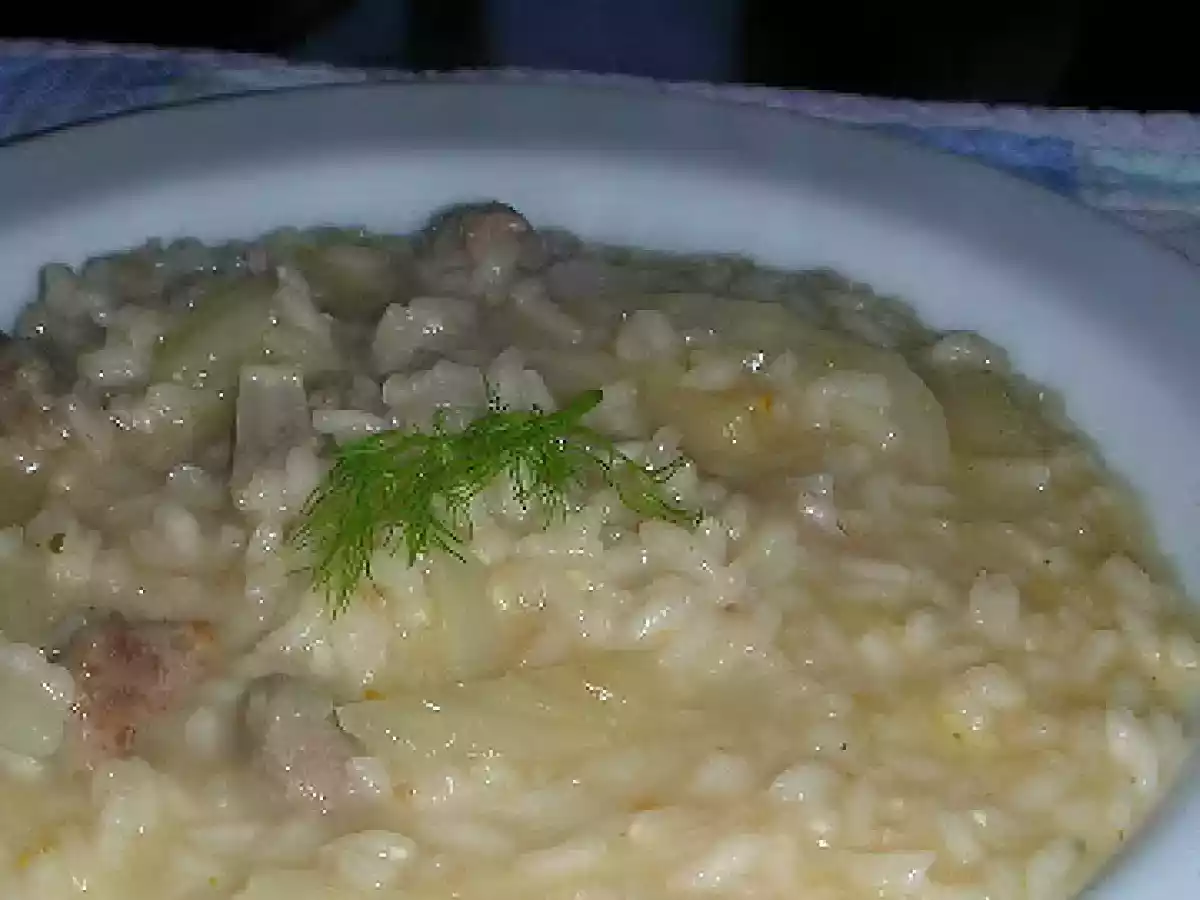 Risotto ai finocchi e profumo di arancia Portata principalefacile55 min Invia questa ricetta ad un amico Stampa la ricetta Contatta l'autore della Ricetta Pubblica la foto di questa ricetta Ingredienti 4 200 g di riso arborio o roma 2 cucchiai di olio extravergine di oliva 1/2 cipolla 80 g di salsiccia 1 finocchio 100 ml di vino bianco mezzo cucchiaino di semi di finocchio una scorzetta di arancia essiccata brodo sale e pepe 1 noce di burro