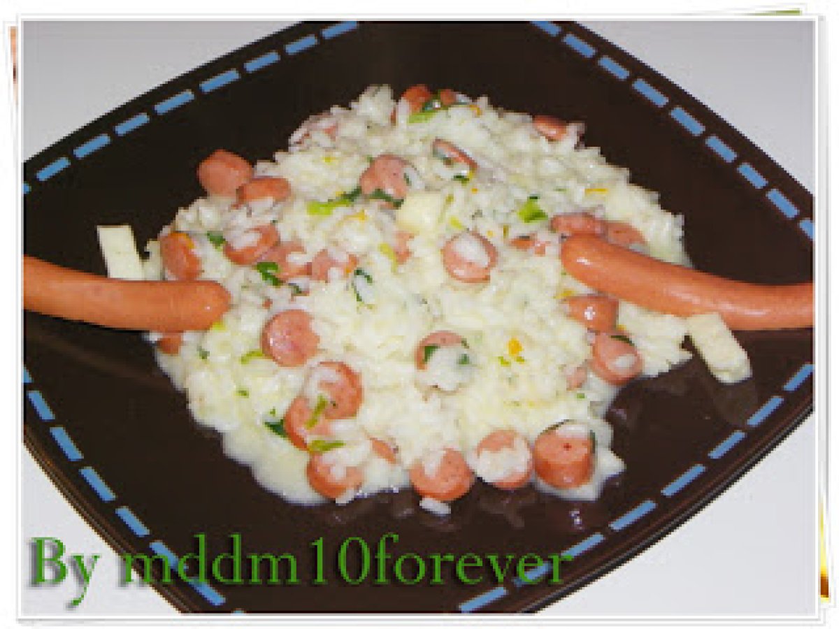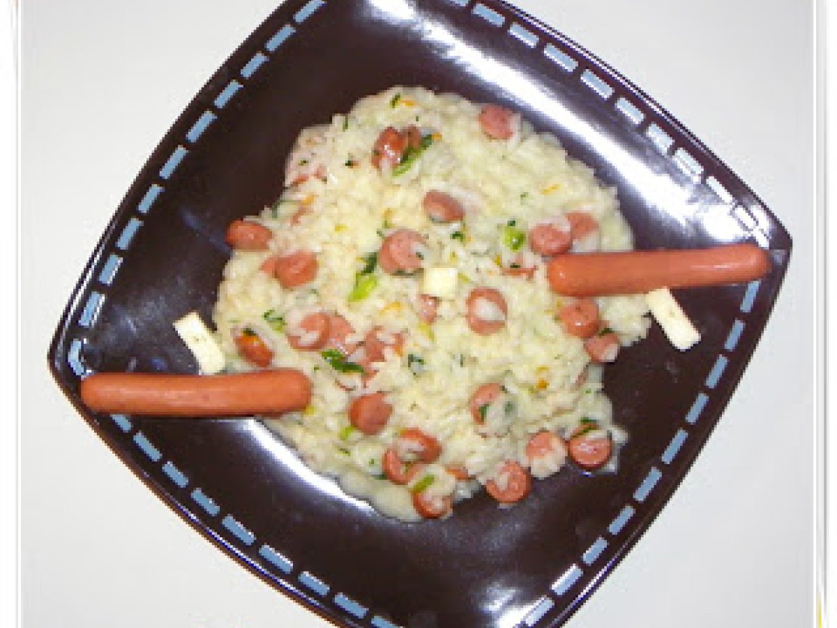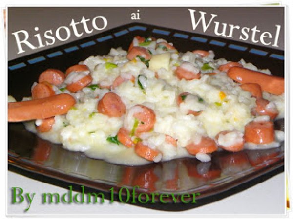Risotto ai wurstel vota adesso PrecedenteProssimo Portata principalefacile50 min Invia questa ricetta ad un amico Stampa la ricetta Contatta l'autore della Ricetta Pubblica la foto di questa ricetta Ingredienti 2 250 g di riso carnaroli 8 wurstel di suino piccanti 100 g di bormino 5 fiori di zucchina freschi 1 cipolla bianca un ciuffetto di prezzemolo fresco 60 g di parmigiano Reggiano 1 nocetta di burro olio extravergine di oliva sale