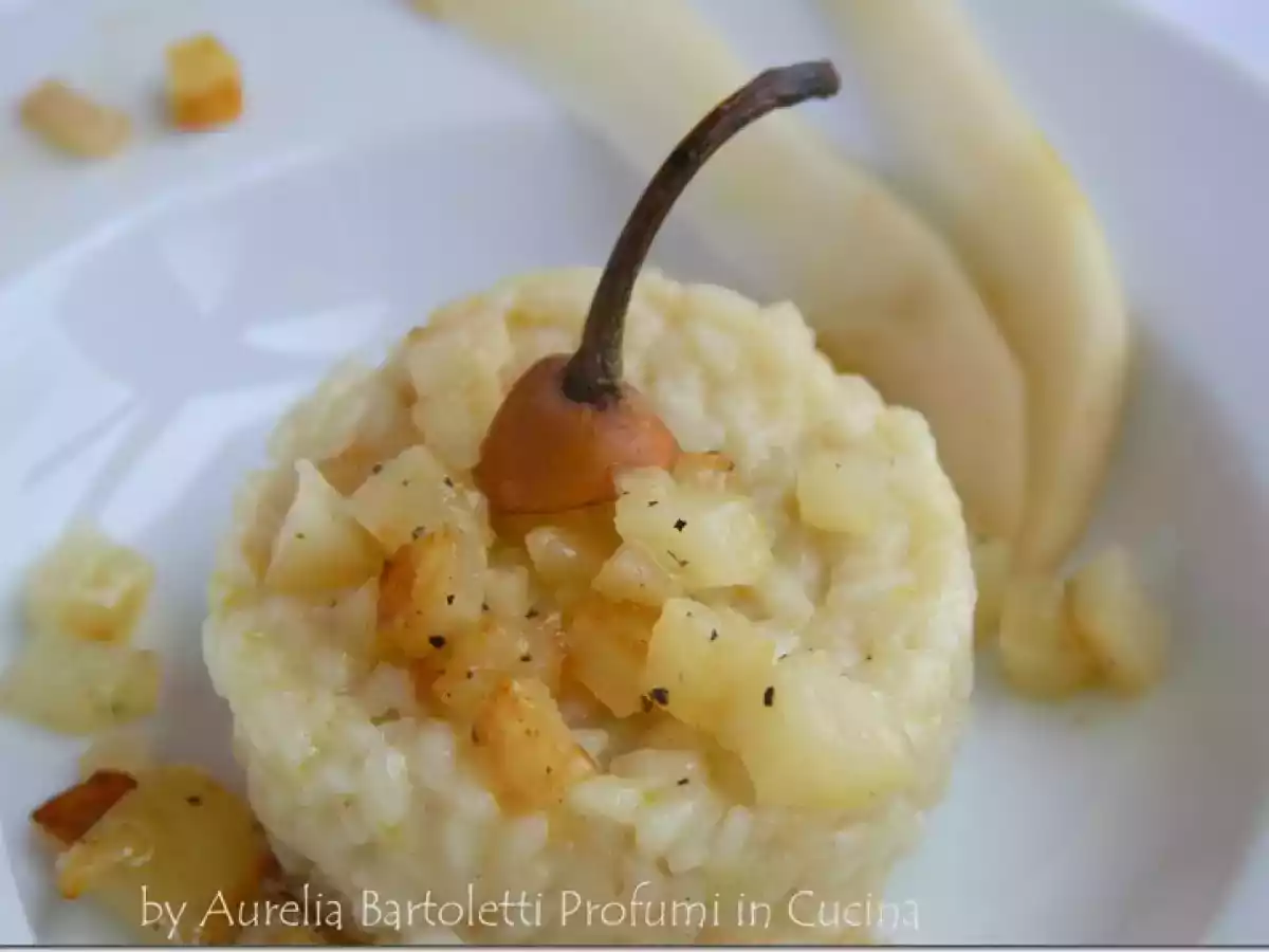 Risotto al pecorino, con le pere PrecedenteProssimo Portata principalefacile1 ora Invia questa ricetta ad un amico Stampa la ricetta Contatta l'autore della Ricetta Pubblica la foto di questa ricetta Ingredienti 4 400 g di riso Carnaroli 1 piccola cipolla bianca 150 g di pecorino 50 g di parmigiano 2 pere 40 g di burro 1 cucchiaio di olio extra vergine di oliva 1 bicchiere di vino bianco del brodo di carne, o di pollo se lo avete sale e pepe