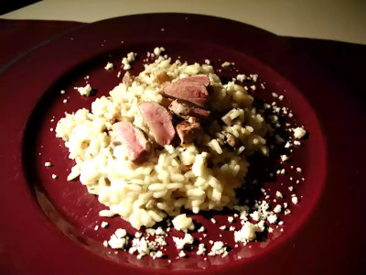 Risotto al piccione e timo con scaglie di castelmagno e aceto balsamico tradizionale