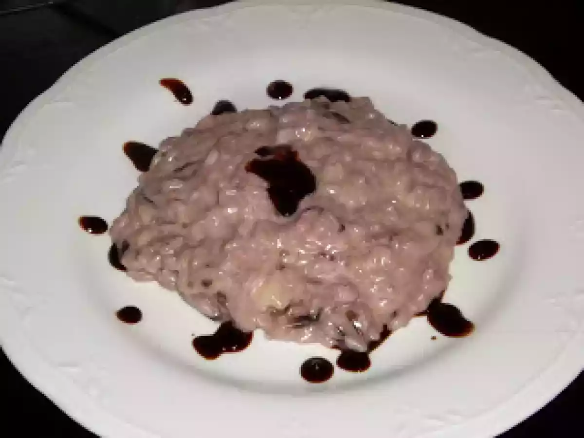 Risotto al radicchio e toma all'aceto balsamico PrecedenteProssimo Portata principalefacile1 ora680 Kcal Invia questa ricetta ad un amico Stampa la ricetta Contatta l'autore della Ricetta Pubblica la foto di questa ricetta Ingredienti 4 400 g di riso 150 g di toma piemontese 1 scalogno 1 radicchio trevigiano piccolo 1 bicchiere di vino rosso brodo vegetale 50 g di burro olio di oliva crema di aceto balsamico sale