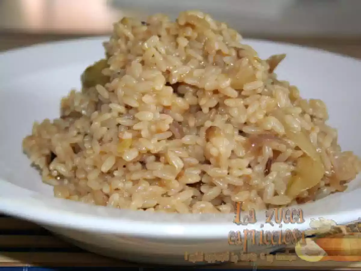 Risotto all'indivia PrecedenteProssimo Portata principalefacile40 min464 Kcal Invia questa ricetta ad un amico Stampa la ricetta Contatta l'autore della Ricetta Pubblica la foto di questa ricetta Ingredienti 2 200 g di riso 1 cespo d'indivia 1 piccola cipolla un filo d'olio 1/2 bicchiere di vino bianco secco brodo vegetale pepe bianco Costo stimato: 1.52Euros€ (0.76€/Porzioni)