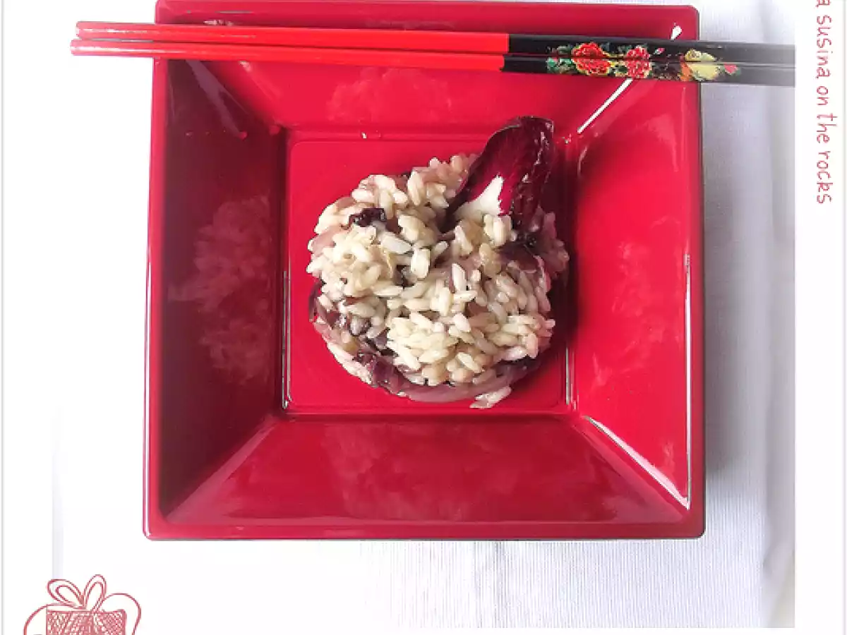 Risotto alle acciughe e radicchio rosso trevisano vota adesso PrecedenteProssimo Portata principalefacile45 min456 Kcal Invia questa ricetta ad un amico Stampa la ricetta Contatta l'autore della Ricetta Pubblica la foto di questa ricetta Ingredienti 4 320 g di riso Carnaroli 4 acciughe fresche sotto sale mezza cipolla bianca 1 piccolo scalogno vino bianco secco brodo vegetale 400 g di radicchio rosso trevisano 1 bicchiere di aceto di vino bianco 1 spicchio d'aglio 3 cucchiai di parmigiano reggiano grattugiato olio extravergine di oliva sale pepe Costo stimato: 7.05Euros€ (1.76€/Porzioni)