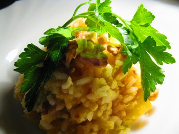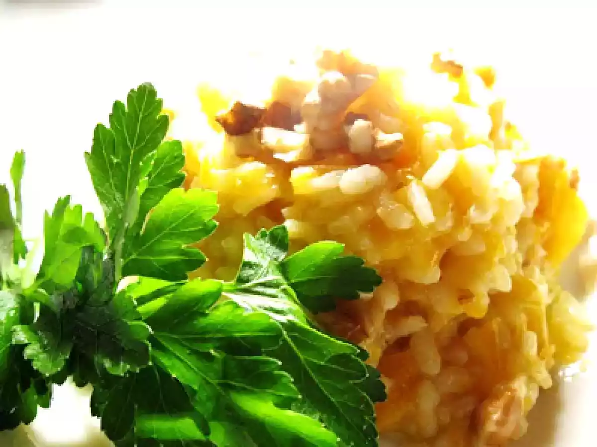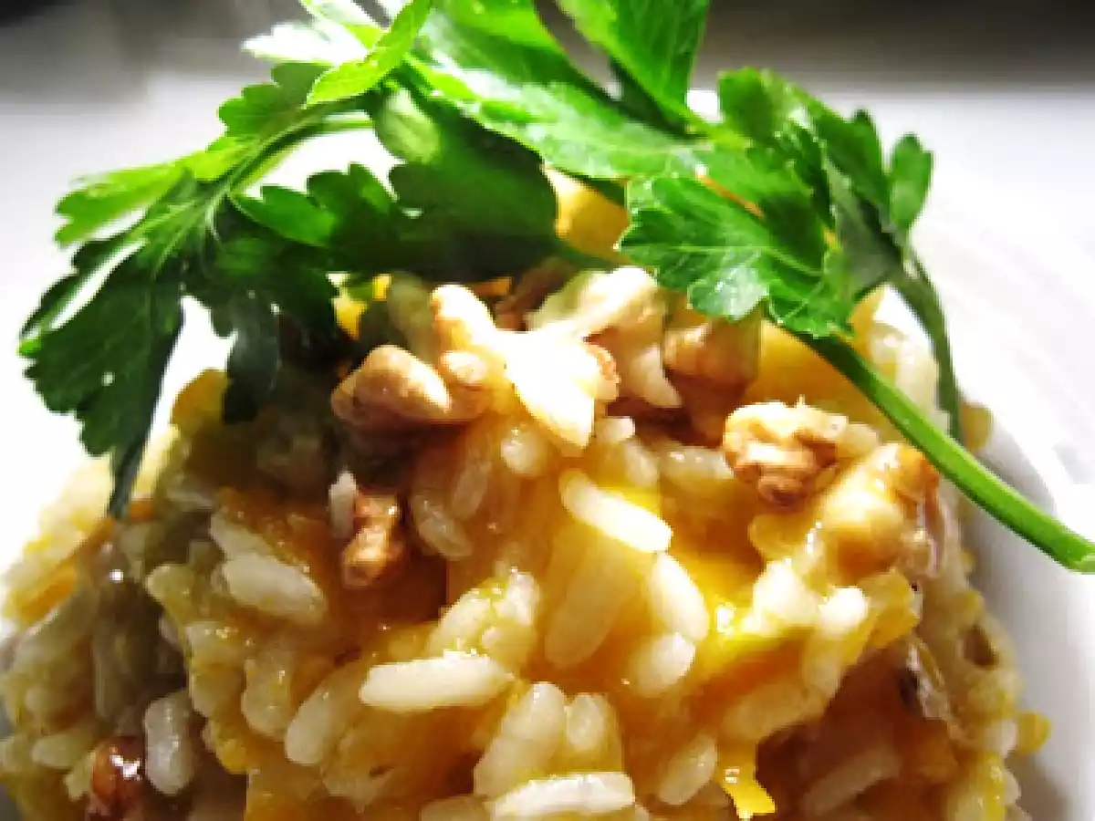 Risotto alle carote e noci PrecedenteProssimo Portata principalefacile50 min992 Kcal Invia questa ricetta ad un amico Stampa la ricetta Contatta l'autore della Ricetta Pubblica la foto di questa ricetta Un risotto speciale Ingredienti 1 2 cipollotti 2 carote medio-piccole 70 gr di riso per risotti 2-3 cucchiai di olio extra 2 cucchiai di panna o un ricciolo di burro 1 dito di vino bianco secco 1/2 dado per brodo vegetale sale e pepe parmigiano q.b. Costo stimato: 1.78Euros€ (1.78€/Porzioni)