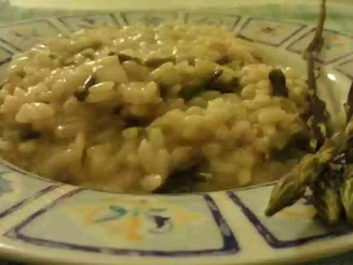 Risotto asparagi e gorgonzola Portata principalefacile27 min319 Kcal Invia questa ricetta ad un amico Stampa la ricetta Contatta l'autore della Ricetta Pubblica la foto di questa ricetta Ingredienti 4 100 g di riso arborio 1 mazzetto di asparagi selvatici 120 g di gorgonzola 1 cipollotto fresco olio extra-vergine d'oliva sale 1/2 bicchiere di spumante secco 1/2 l. di brodo vegetale