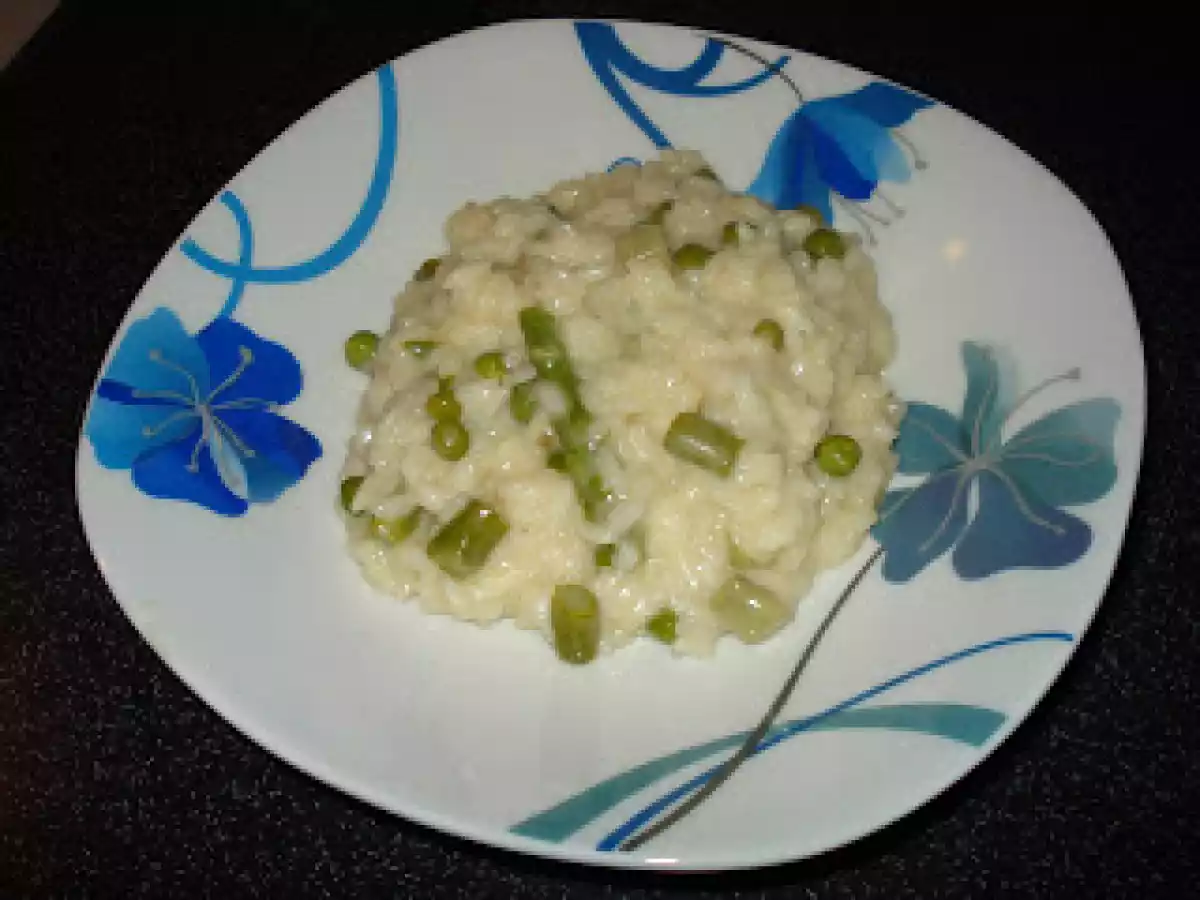 Risotto asparagi, piselli e gambi di carciofo vota adesso Portata principalefacile35 min Invia questa ricetta ad un amico Stampa la ricetta Contatta l'autore della Ricetta Pubblica la foto di questa ricetta Ingredienti 2 200 g di riso carnaroli 6 asparagi 4 gambi di carciofo una manciata abbondante di piselli mezza cipolla tritata finemente olio evo un pezzettino di taleggio brodo vino bianco