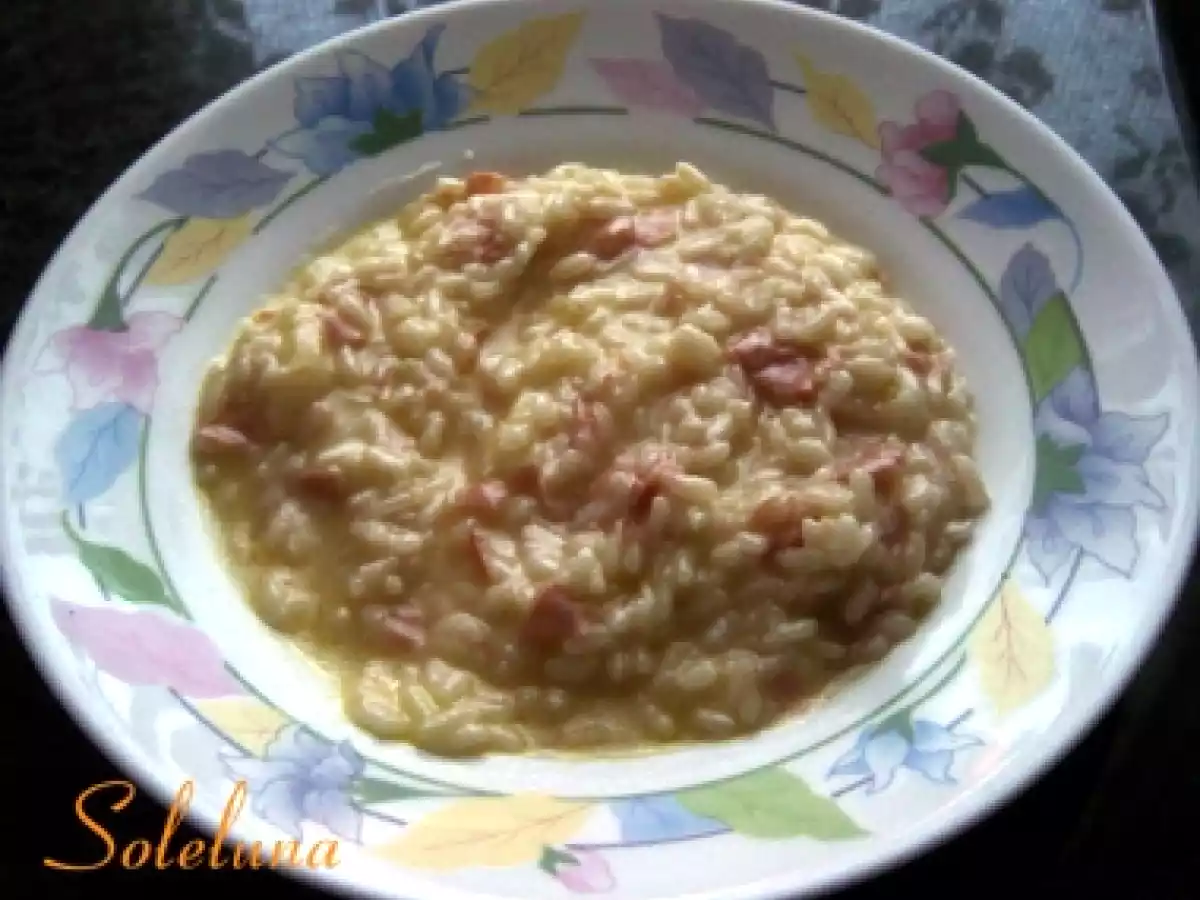 Gustosa ricetta calda, il riso va bene con mortadella.