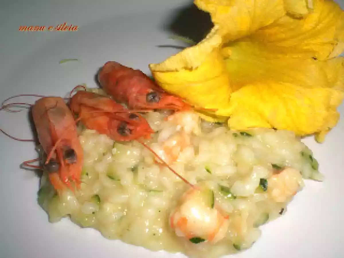 Risotto con mazzancolle e julienne di zucchine vota adesso Portata principalefacile50 min Invia questa ricetta ad un amico Stampa la ricetta Contatta l'autore della Ricetta Pubblica la foto di questa ricetta Ingredienti 4 470 g riso Carnaroli 500 g mazzancolle 1 zucchina 1/2 dado insaporitore aglio prezzemolo 2 dadi vegetali 20g formaggio morbido al latte curry scorzette di limone 2 cucchiaio olio evo 1 cucchiaio olio fior di limone brandy sale