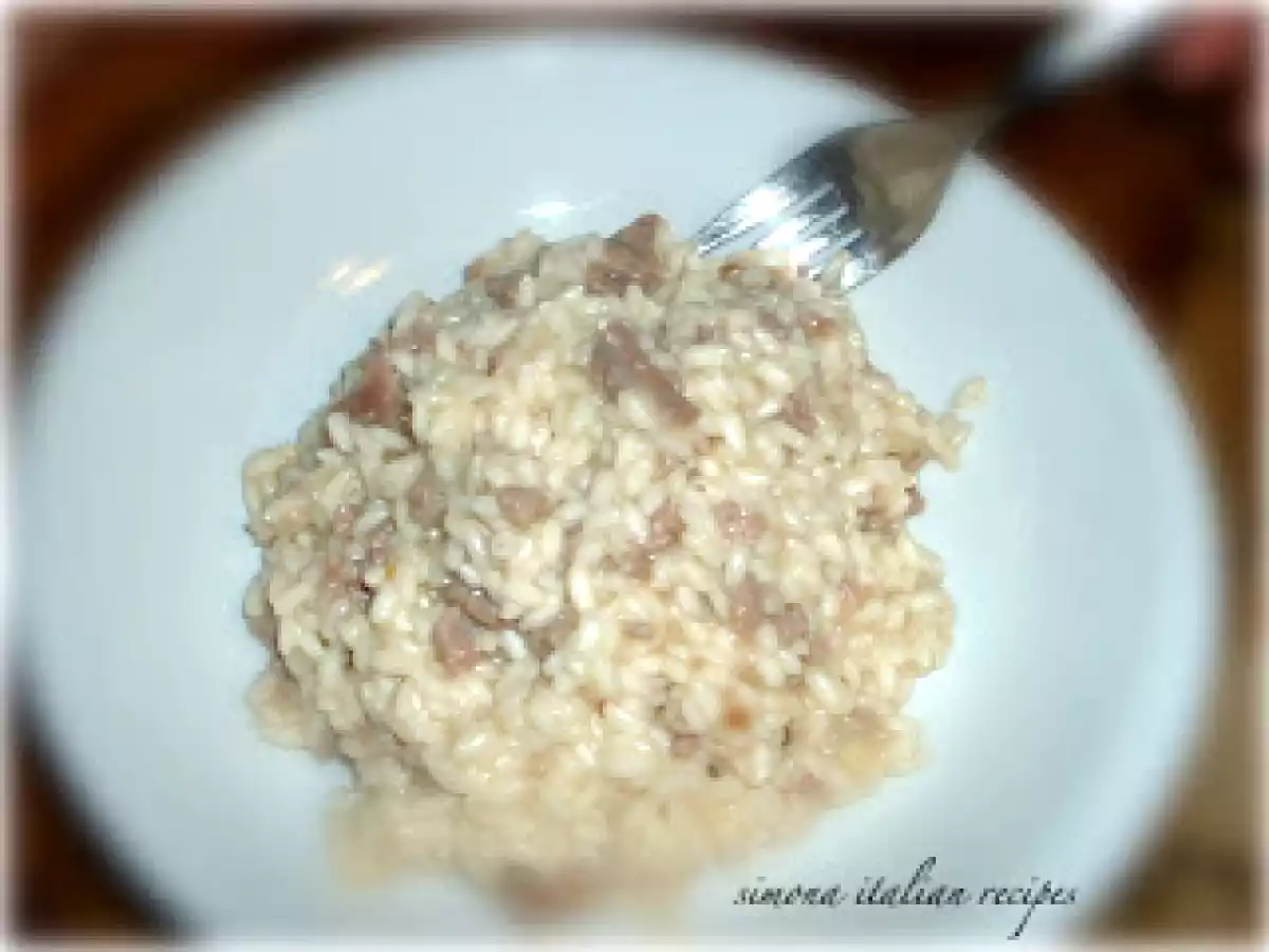 Risotto con pasta di salame (lombardia,primi) Portata principalefacile50 min1029 Kcal Invia questa ricetta ad un amico Stampa la ricetta Contatta l'autore della Ricetta Pubblica la foto di questa ricetta Ingredienti 3 9 pugni di riso 250 gr pasta di salame 1 cipolla dorata midollo o burro brodo di carne parmigiano grattuggiato Costo stimato: 2.61Euros€ (0.87€/Porzioni)