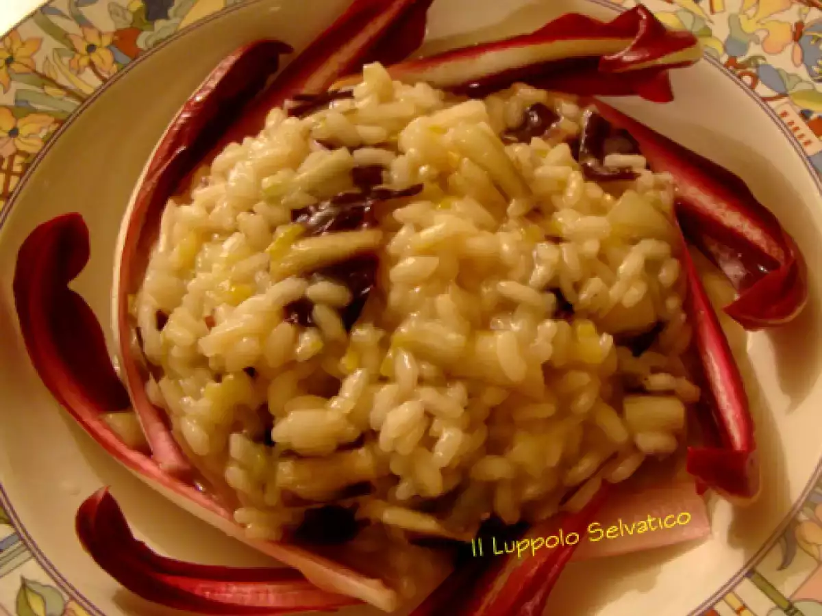 Risotto con porri e radicchio tardivo PrecedenteProssimo Portata principalefacile50 min252 Kcal Invia questa ricetta ad un amico Stampa la ricetta Contatta l'autore della Ricetta Pubblica la foto di questa ricetta Ingredienti 4 200 g di riso Vialone nano 150 g di radicchio tardivo già mondato un piccolo porro una noce di burro brodo vegetale q.b. vino bianco sale Costo stimato: 2.38Euros€ (0.59€/Porzioni)