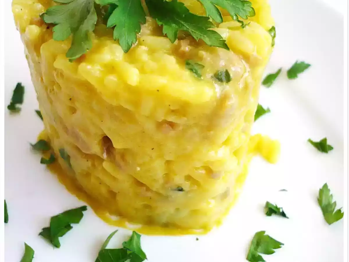 Risotto con salsiccia e provola Portata principalefacile50 min1102 Kcal Invia questa ricetta ad un amico Stampa la ricetta Contatta l'autore della Ricetta Pubblica la foto di questa ricetta Ingredienti 2 200 g Riso 1 bustina di zafferano Ariosto 150 g di provola 2 salsicce 300 ml di brodo vegetale Parmigiano grattugiato Cipolla Burro Sale e pepe prezzemolo Costo stimato: 7Euros€ (3.5€/Porzioni)