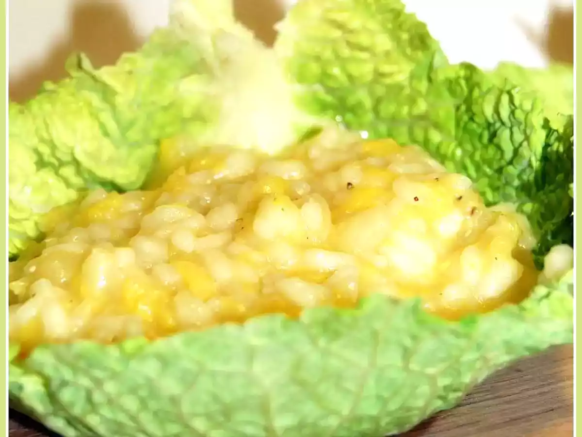Risotto con verza, patate e cumino Portata principalefacile40 min Invia questa ricetta ad un amico Stampa la ricetta Contatta l'autore della Ricetta Pubblica la foto di questa ricetta Ingredienti 2 Riso Carnaroli, 180 gr Verza piccola, 1 Patata, 1 Scalogno, 1 Aglio, 1 spicchio Brodo vegetale, 1/2 litro Cumino in polvere, 1/2 cucchiaino raso Sale Pepe Olio d'oliva