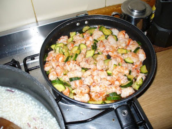 Risotto con zucchine e gamberi PrecedenteProssimo Portata principalefacile40 min Invia questa ricetta ad un amico Stampa la ricetta Contatta l'autore della Ricetta Pubblica la foto di questa ricetta Ingredienti 4 500 g gamberi 2 zucchine 350 g riso roma 1 pezzettino brodo vegetale olio 1 noce di burro prezzemolo sale e pepe