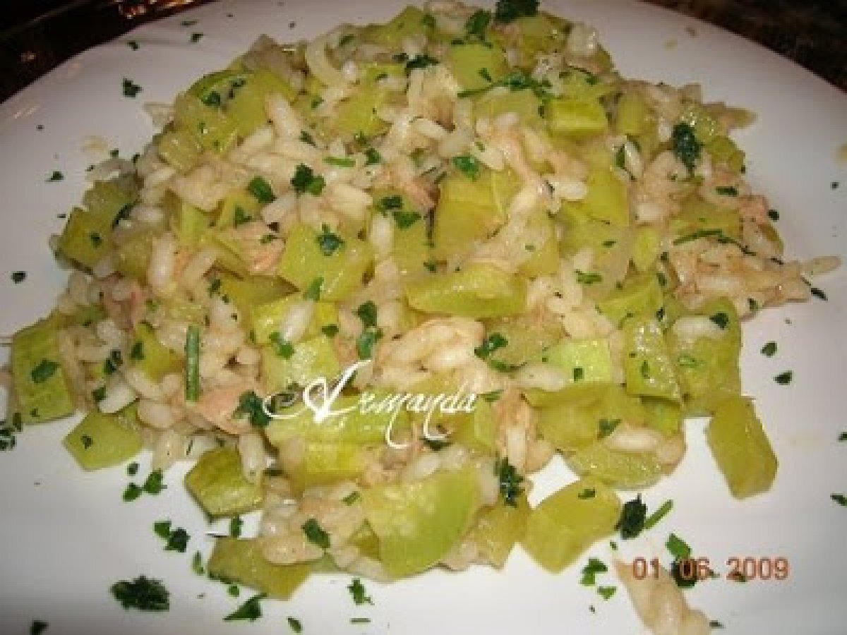 Risotto con zucchine e tonno PrecedenteProssimo Portata principalefacile25 min Invia questa ricetta ad un amico Stampa la ricetta Contatta l'autore della Ricetta Pubblica la foto di questa ricetta Servite con un buon vino. Ingredienti 4 300 g di riso 2 zucchine 200 g di tonno 1/2 bicchiere di vino bianco 1/2 cipolla 1 spicchio di aglio prezzemolo sale pepe q.b. olio E.V.O. q.b. un pò di brodo di pesce