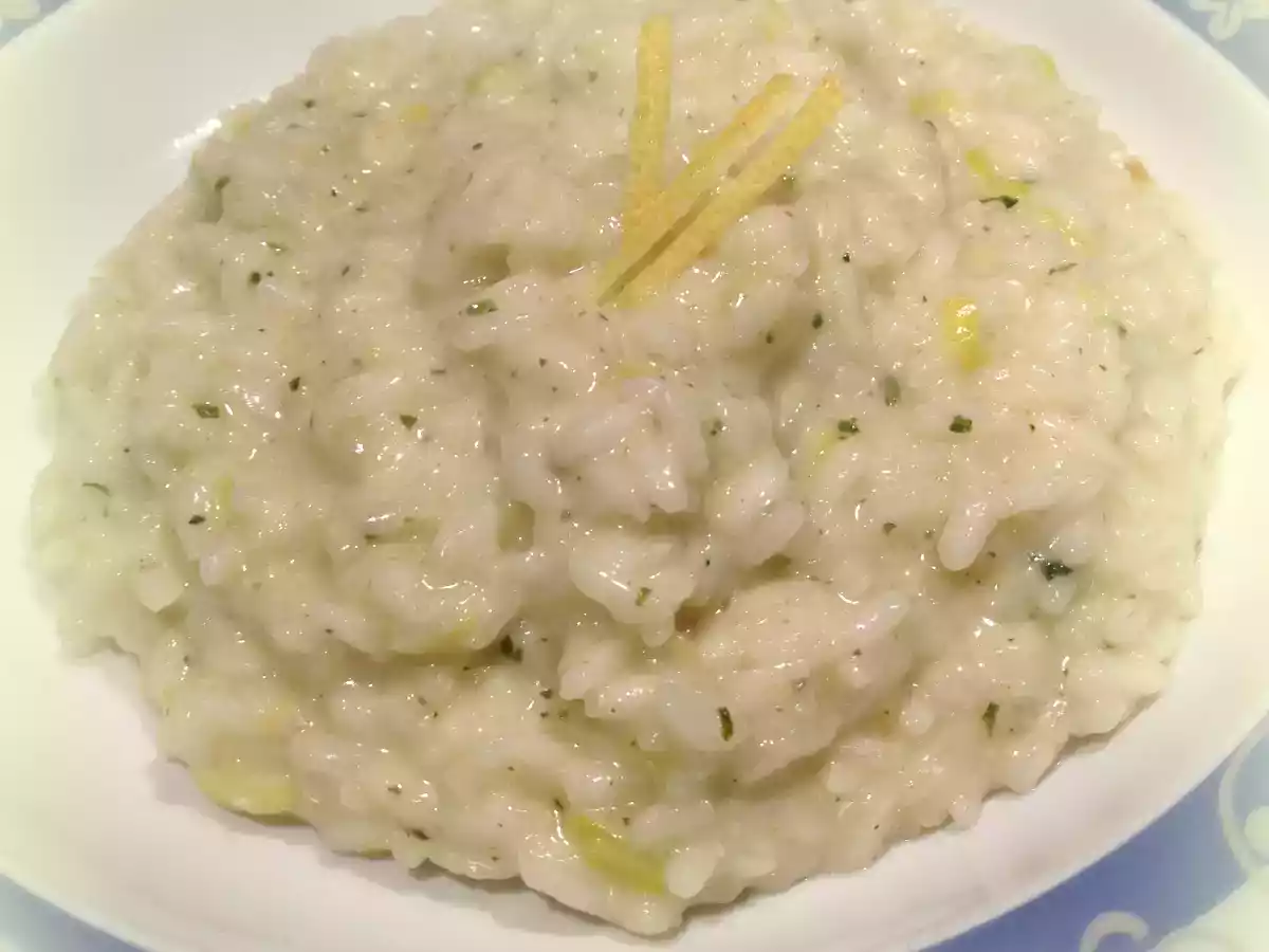 Un risotto delicato, colorato di un verde tenue e illuminato di giallo limone, ha una consistenza cremosa e vellutata al palato, con note fresche di agrume che portano i sensi a un livello superiore.