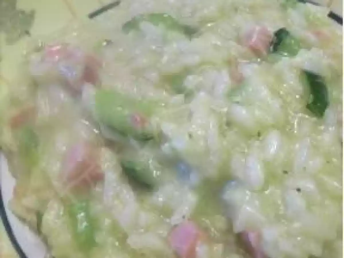 Risotto delicato con zucchina e prosciutto Portata principalefacile50 min387 Kcal Invia questa ricetta ad un amico Stampa la ricetta Contatta l'autore della Ricetta Pubblica la foto di questa ricetta Ingredienti 4 300 g di riso 2 zucchine brodo 150 g di prosciutto cotto a cubetti 1 spicchio d'aglio prezzemolo q.b. parmigiano q.b. olio d'oliva Costo stimato: 5.33Euros€ (1.33€/Porzioni)
