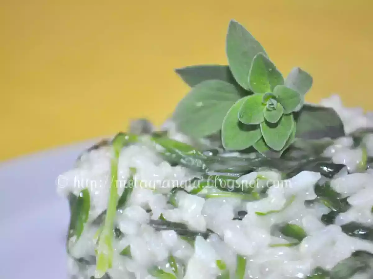 Risotto della luna. le erbe del passato. PrecedenteProssimo Portata principalefacile40 min Invia questa ricetta ad un amico Stampa la ricetta Contatta l'autore della Ricetta Pubblica la foto di questa ricetta Ingredienti 4 300g riso Carnaroli 1 mazzo di erba selene 1 cipollotto 1 bicchiere di Pigato della Riviera di Ponente brodo, q.b. 2 cucchiai di parmigiano reggiano grattugiato 1 ciuffo di maggiorana fresca olio, burro, sale