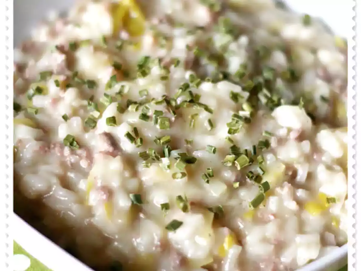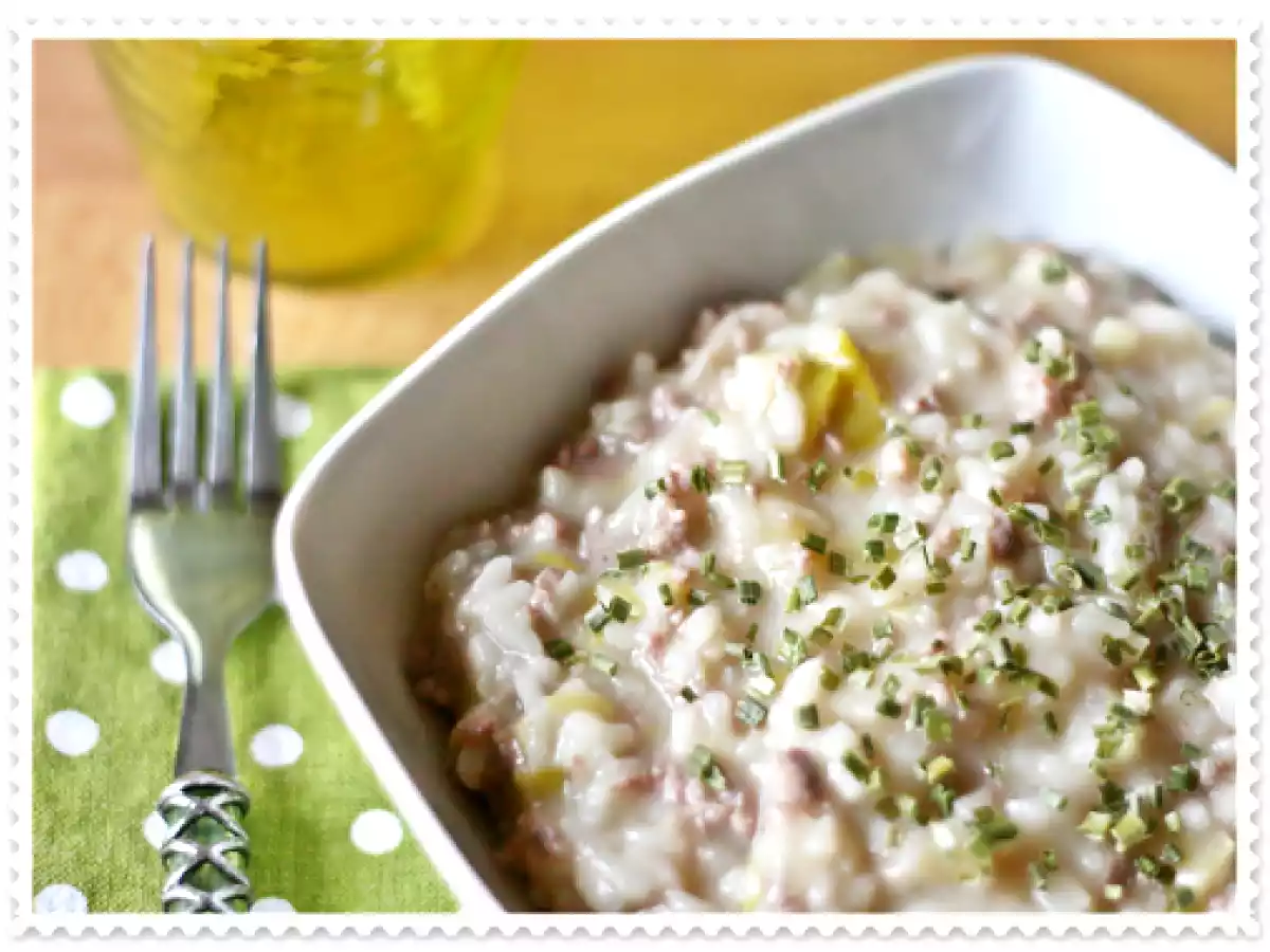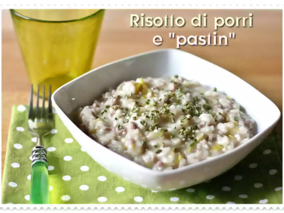 Risotto di porri e pastin PrecedenteProssimo Portata principalefacile55 min606 Kcal Invia questa ricetta ad un amico Stampa la ricetta Contatta l'autore della Ricetta Pubblica la foto di questa ricetta Ingredienti 3 160 g di riso carnaroli 1 scalogno olio extravergine di oliva vino bianco 1 porro 240 g di pasta di salame erba cipollina 2 cucchiai di pecorino romano grattugiato sale qb brodo vegetale qb Costo stimato: 5.32Euros€ (1.77€/Porzioni)